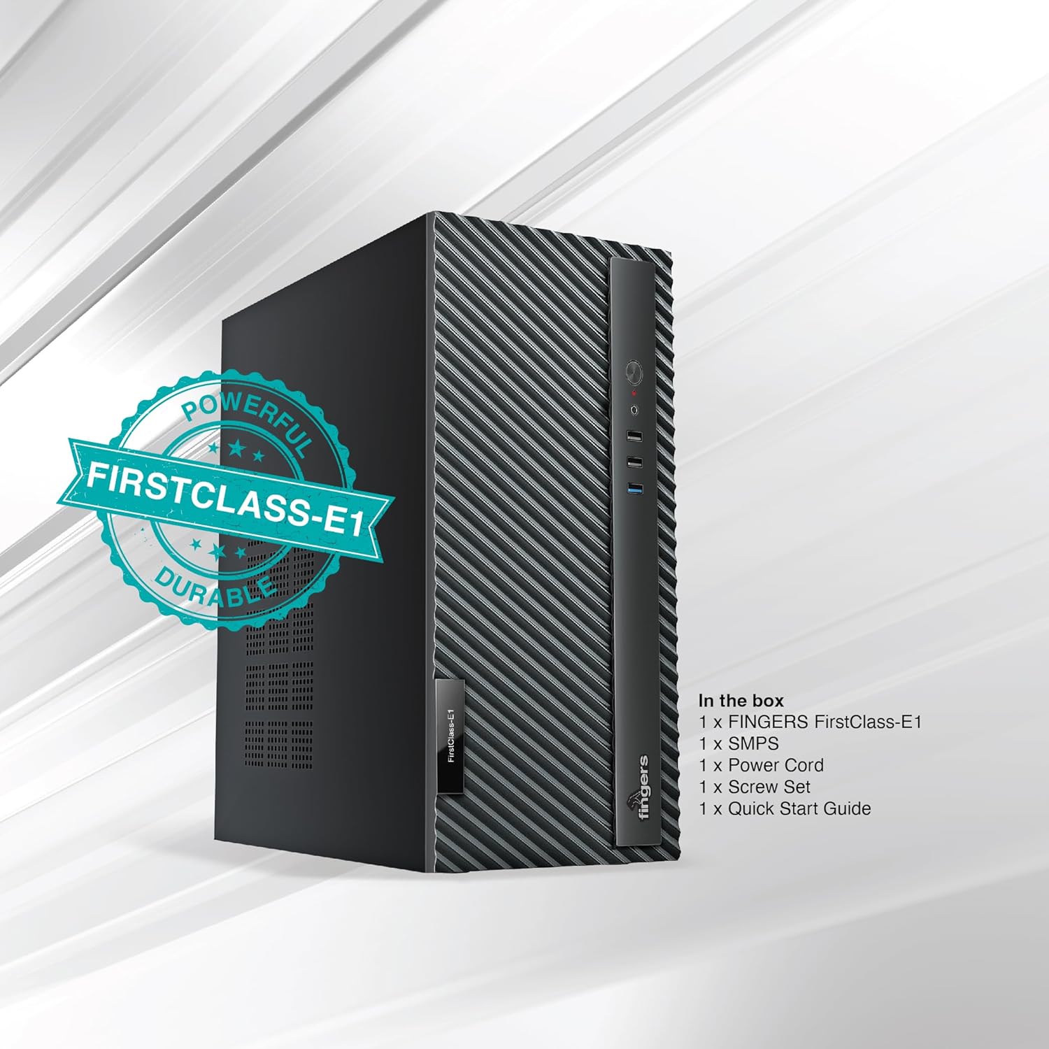 FINGERS FirstClass-E1 Micro ATX PC Case with Compact Design, Premium Thick Metal Structure, 1 x USB 3.0 + 2 x USB 2.0 + Earphone Jack (HD Audio & Mic), SMPS Bundled, BIS Certified