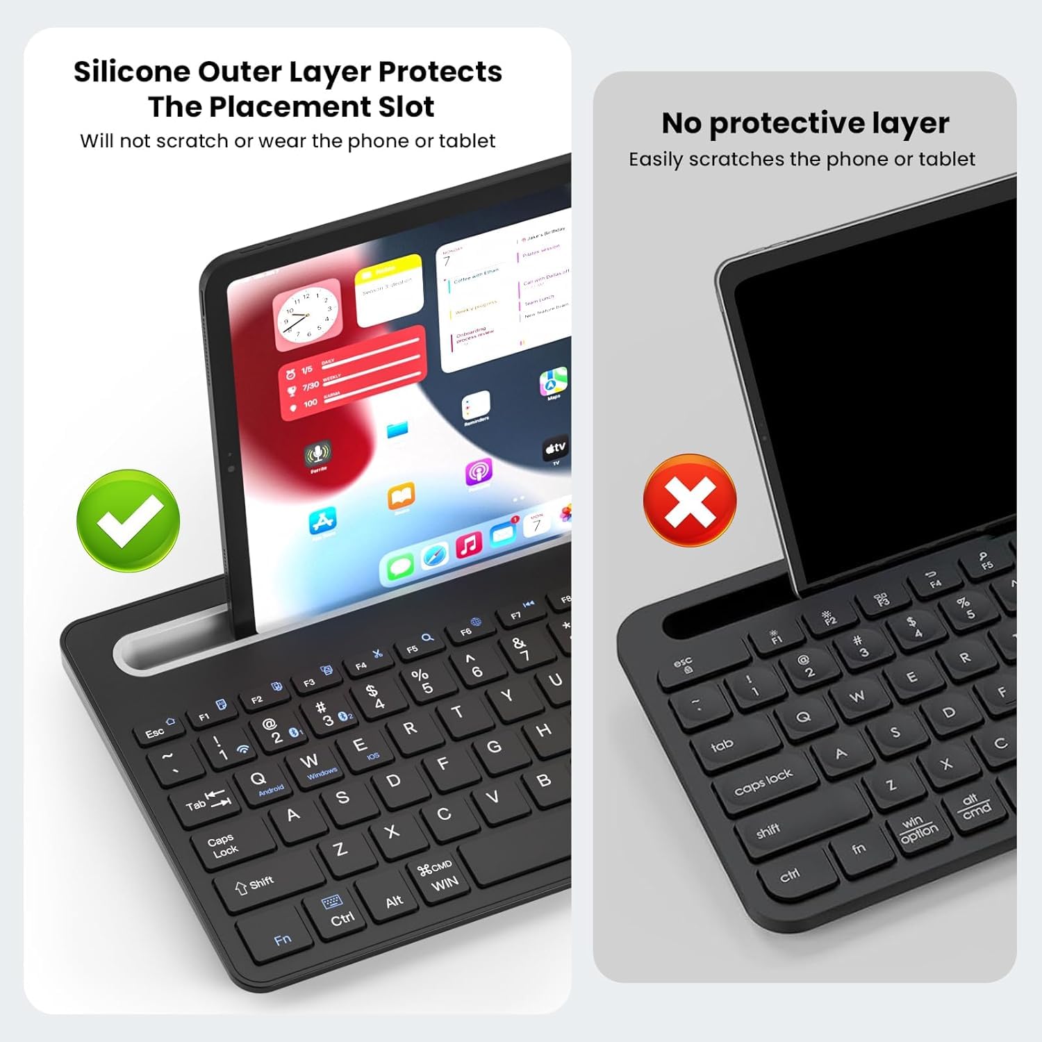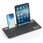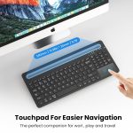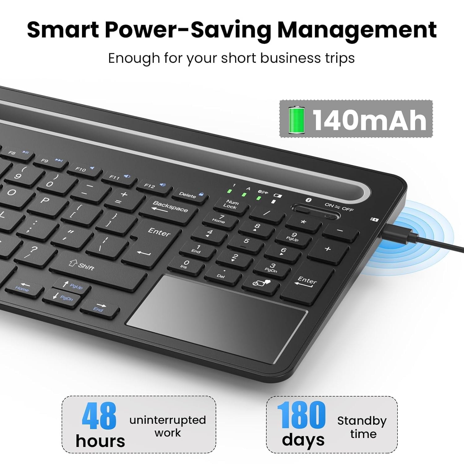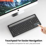 1. Touchpad gives more convenience. No long need to carry mouse. 2. Full feature keys meets kinds of office needs, such as Numeric Keypad. 3. Groove can hold your various devices, such as smart phone and tablet. 4. Can connect to two bluetooth devices and freely switch the connection. Support Most Bluetooth-enabled Devices Compatible with Windows, Android Part functions compatible with Mac OS and IOS Supports tablet, laptop, computer, desktop, smart tv, smart phone and etc.