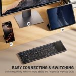 【Wireless Keyboard with Multi-Gesture Touchpad】The built-in precision touchpad replaces separate mouse devices, supporting multi-finger gestures for scroll/zoom/swipe functions. Utilize the dedicated system toggle (Press fn+iOS/Android/Windows) to optimize trackpad responsiveness across devices. (Compatibility note: Requires iOS 13.4.1 and above version)