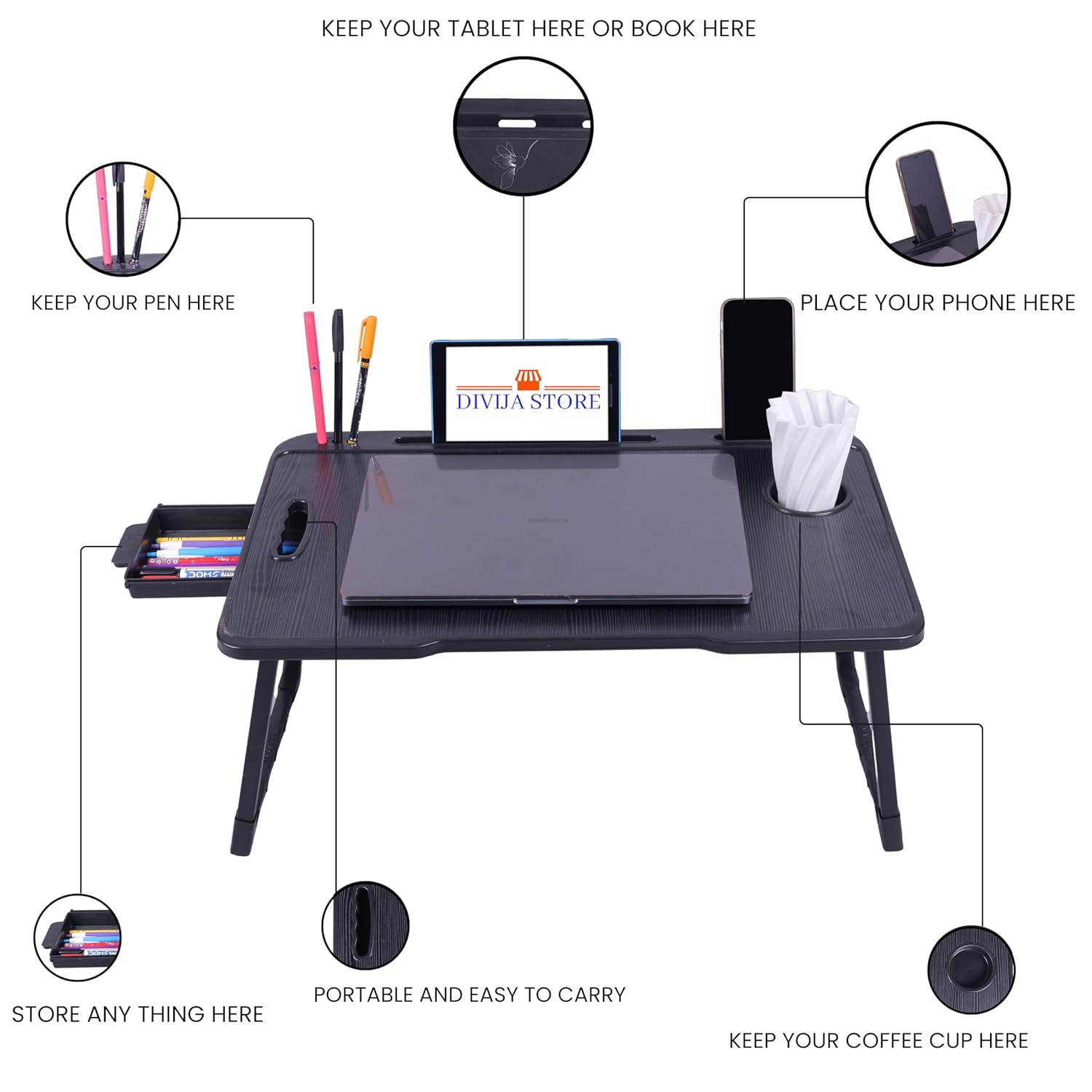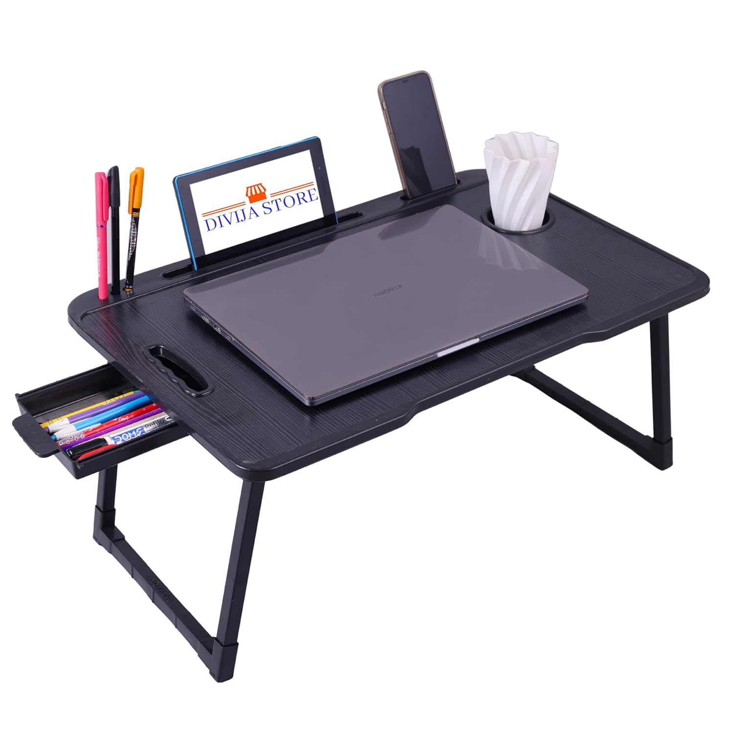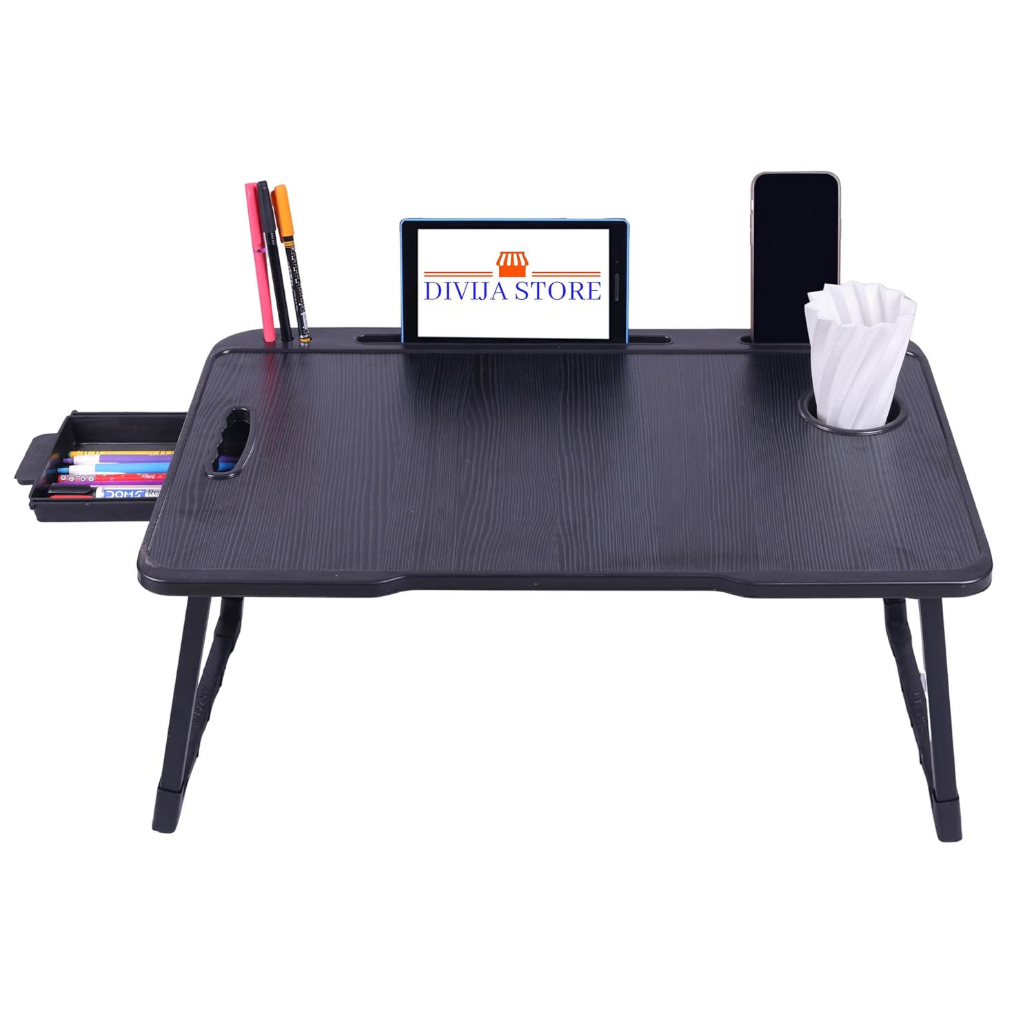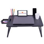 Laptop Desk for Bed, Gorogue Stud Foldable Wooden Mini Lapdesk for Couch & sofa, Study Tray Table Stand for Writing PERFECT UTILITY: If you work on your laptop or book while on bed or on the floor, this product IS for you. It elevates the visibility to perfect eye level so as to minimize neck and back strain. HIGHLY VERSATILE – This multi functional table will be a perfect addition to your office, home or home office. Use it as a multifunctional workstation, a standing desk for office work, a snack tray for watching TV, a laptop or tablet stand for relaxing in bed or a food table to enjoy breakfast in bed! HEALTHIER WORKING – It frees from disorders such as backache, neck pain and stiffness caused by sitting long hours in the same posture. Can be used in conjunction with a regular desk to enables you to work while standing. DURABLE CONSTRUCT: Sturdy and scientific construction – it can afford heavy items ( like printer, laptop, and desk organizers ) but occupy small areas.
