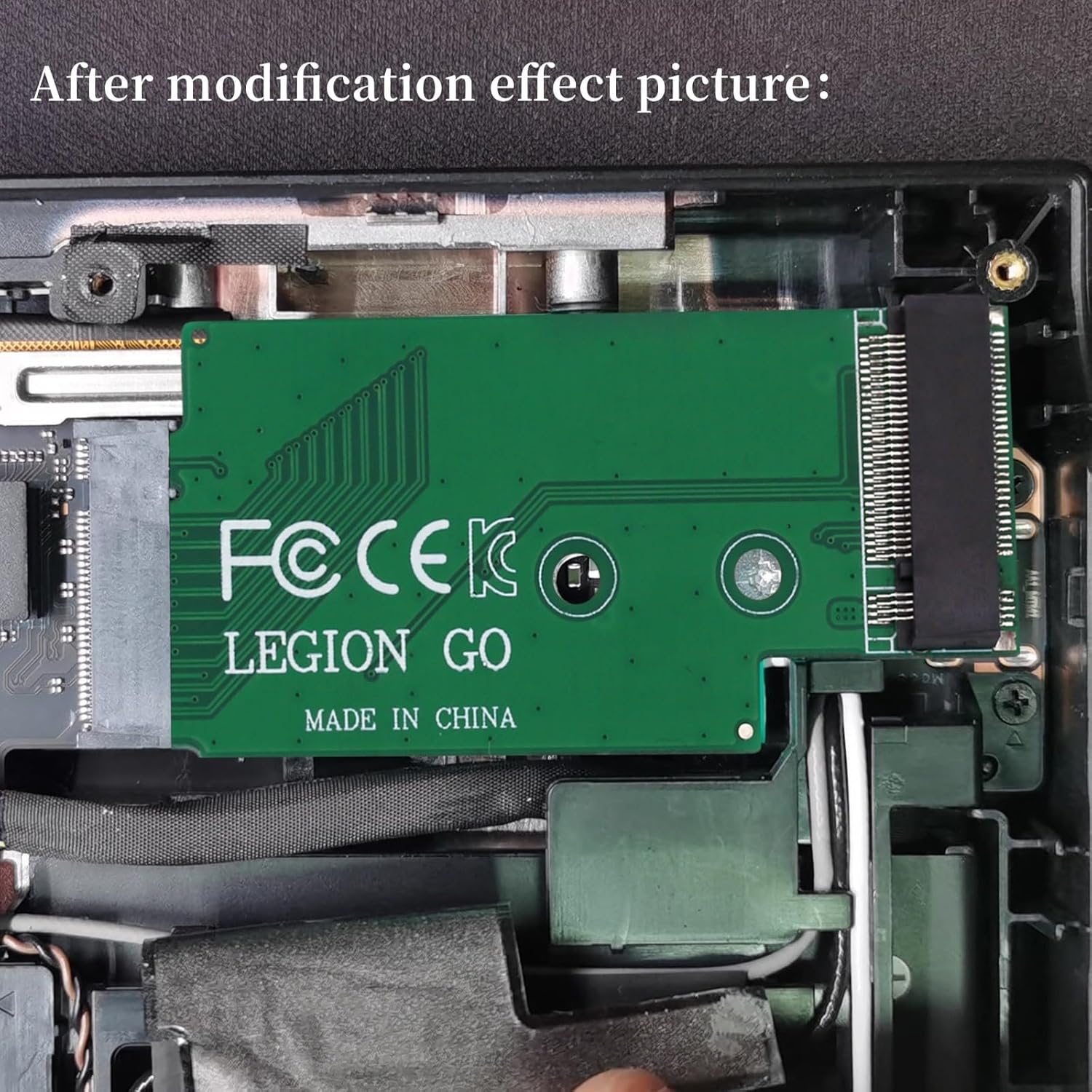 This expansion board for Legion Go handheld can upgrade 2242 size M.2 SSD to 2242 2260 2280 size NVME M-Key M.2 PCIE 4.0 SSD.The expansion board is designed in sunken gold green color, which perfectly fits the body of Legion Go handheld, and at the same time, it provides higher transfer speeds and larger storage capacity to meet the user’s High speed and high capacity storage.
