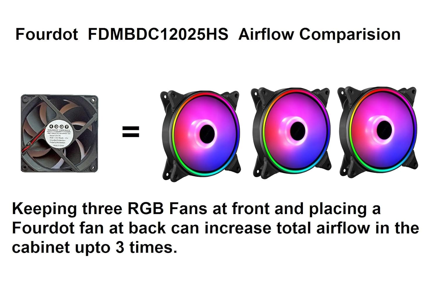 Fourdot coolings 120×25 size fan runs at 3000rpm speed and maintain temperature easily. it comes with 300mm cable length with motherboard connector, having 1 year of brand warranty.