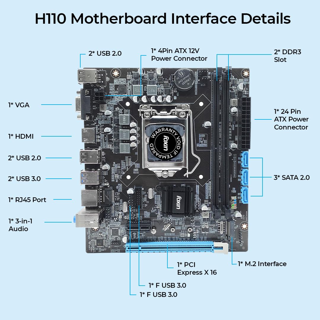 Be the first to review “FOXIN H110 Motherboard Prime | LGA 1151 Socket | H110 Chipset | Dual Channel DDR4 RAM (Up to 32GB) | NVMe Port | USB 3.0, HDMI, VGA | Supports Intel 6th, 7th, 8th Gen CPUs | for Desktop PC” Cancel reply