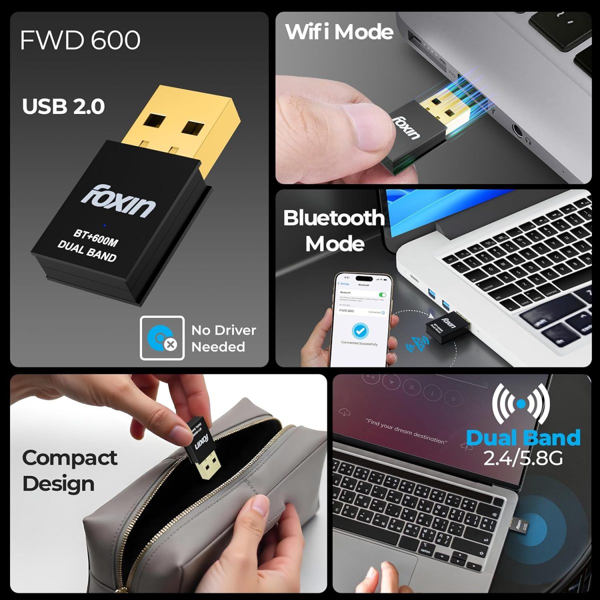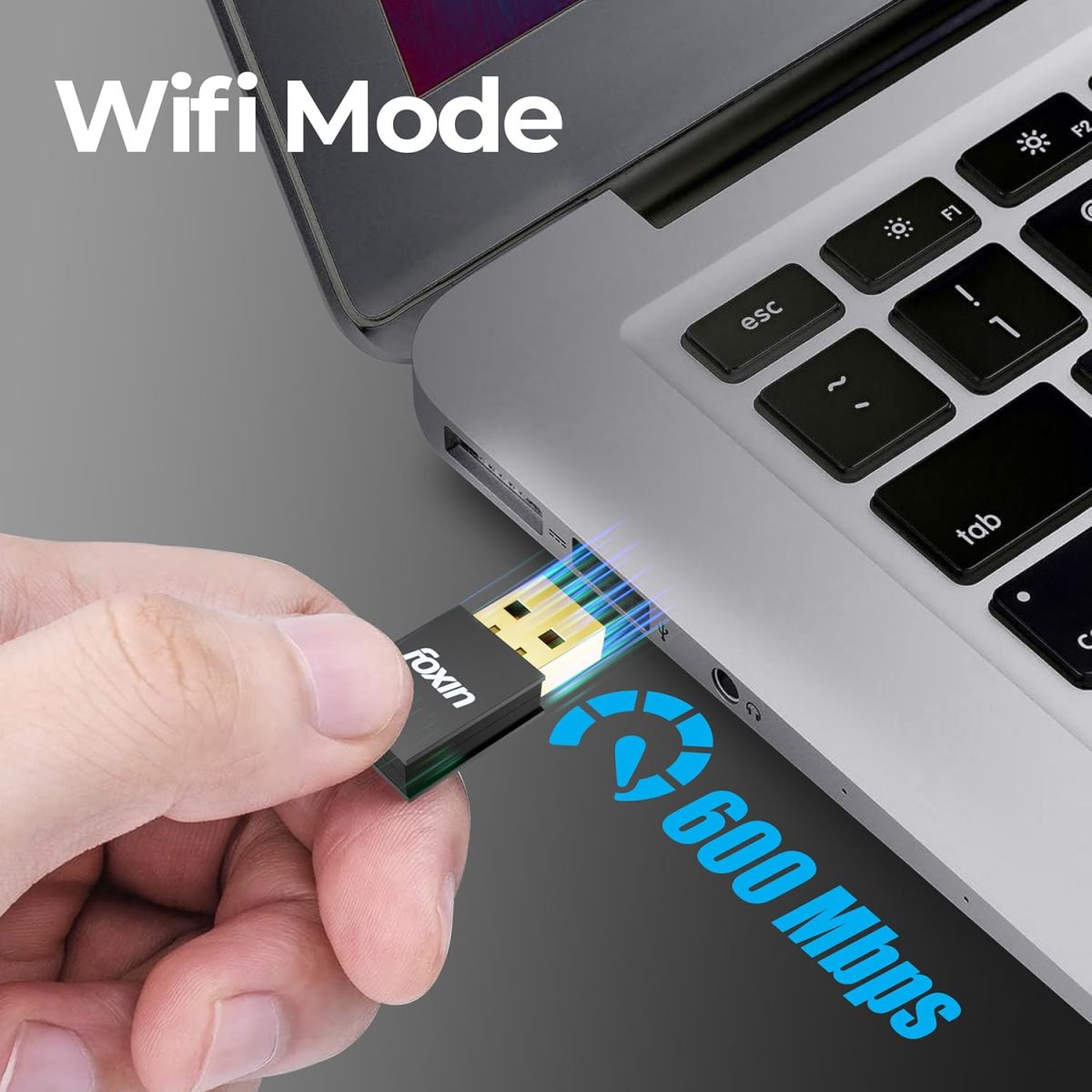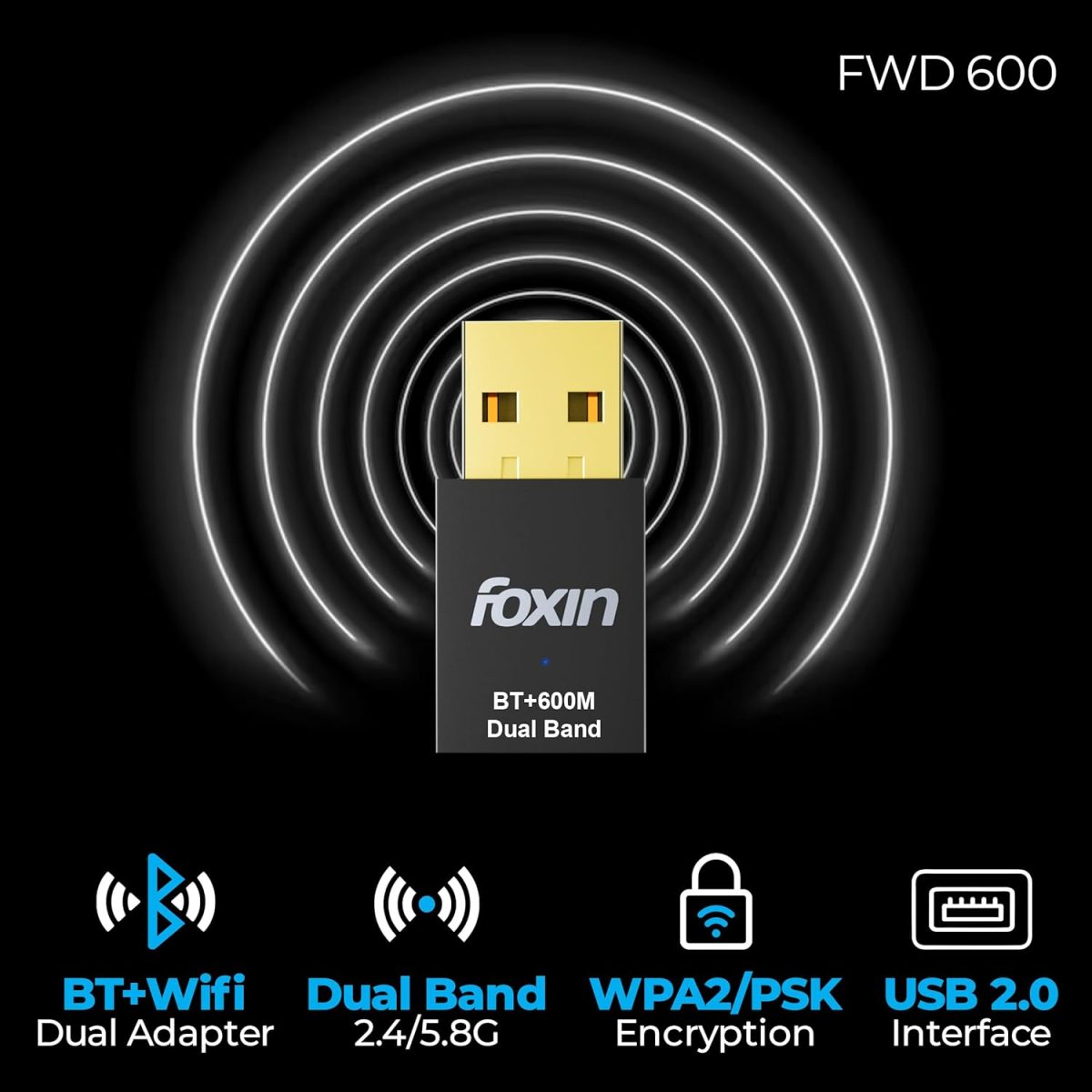 Upgrade your PC, Laptop, or Desktop with the Foxin FWD 600 USB Adapter. Enjoy lightning-fast 600 Mbps speeds with dual-band Wi-Fi (2.4GHz + 5.8GHz) and seamless Bluetooth connectivity. Designed for performance, portability, and versatility – all in one sleek nano dongle.