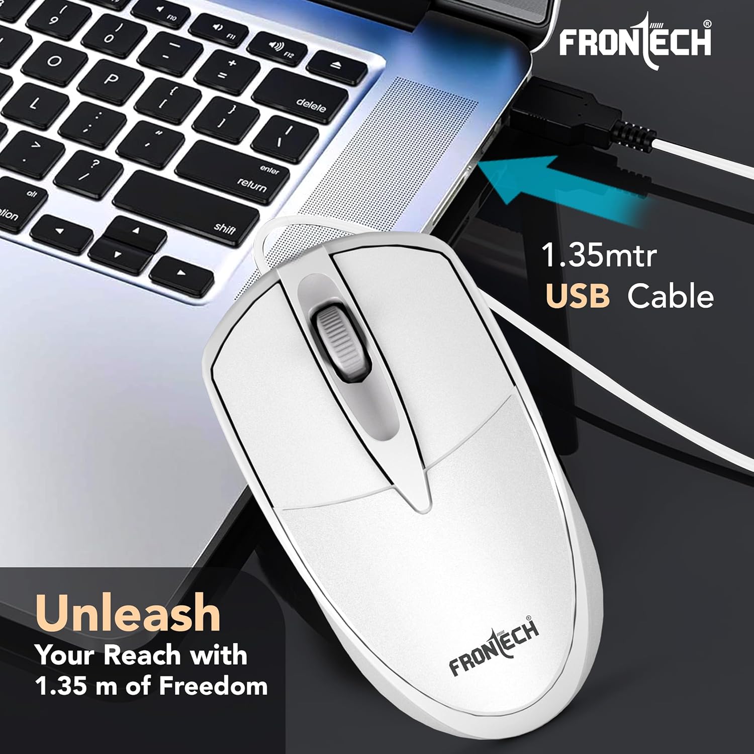 Durable 1.35m USB Cable – Provides extended reach and tangle-free freedom.