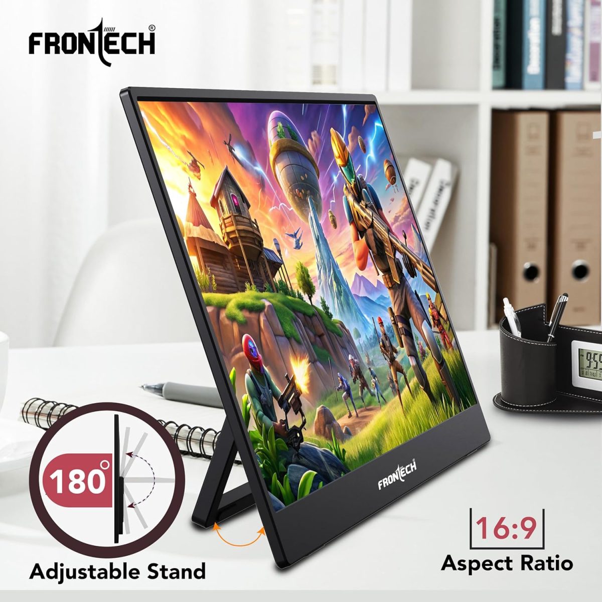 FRONTECH 15.6″ Portable LED Monitor, Full HD IPS, Dual Type-C & Mini HDMI, Built-in Speakers, 180° Stand, Works with Laptop/PS5/Switch/Phone, 1-Year Warranty (MON-0023)