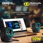 FRONTECH 2.0 Multimedia Speakers: 10W USB-Powered PC/Laptop/Mobile Speakers with 3.5mm AUX & Blue LED Lighting. (SPK-0011)