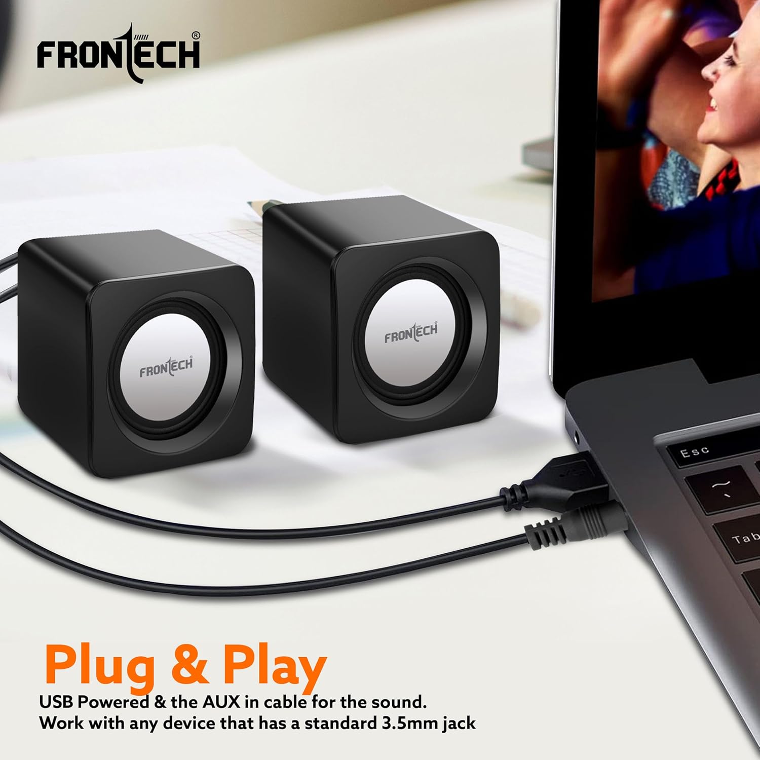 FRONTECH 2.0 Multimedia Speakers with USB Power, AUX Connectivity & Volume Control (SPK-0002BLK)