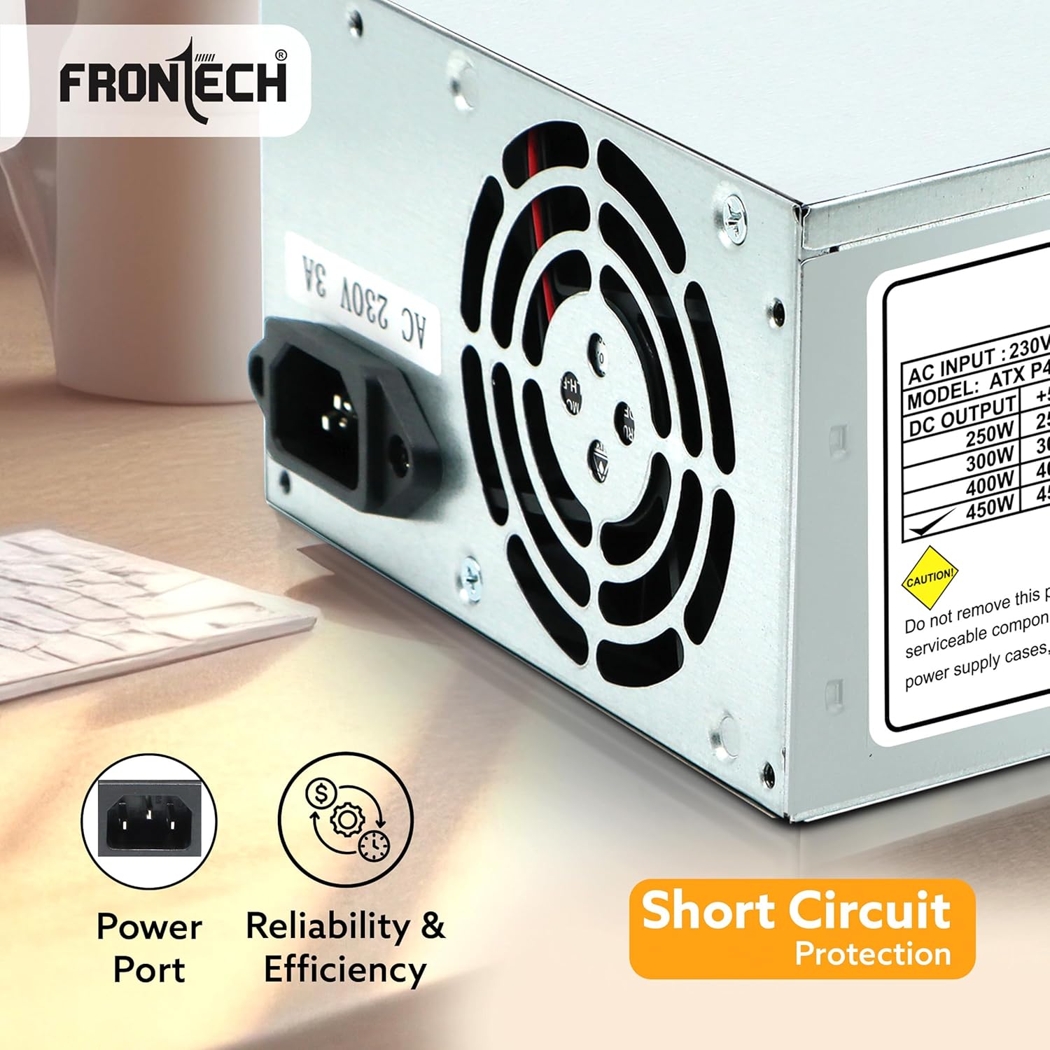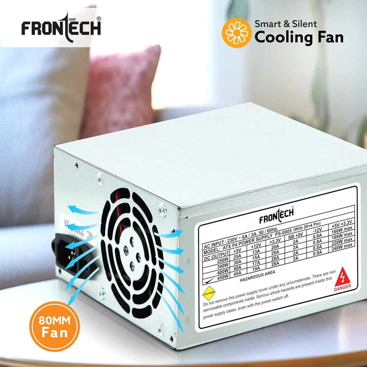 FRONTECH 450 Watts SMPS Power Supply Unit, Compliant with ATX 12V, 20/24 Pin Main Power, Power Protection, (PS-0005, Grey)