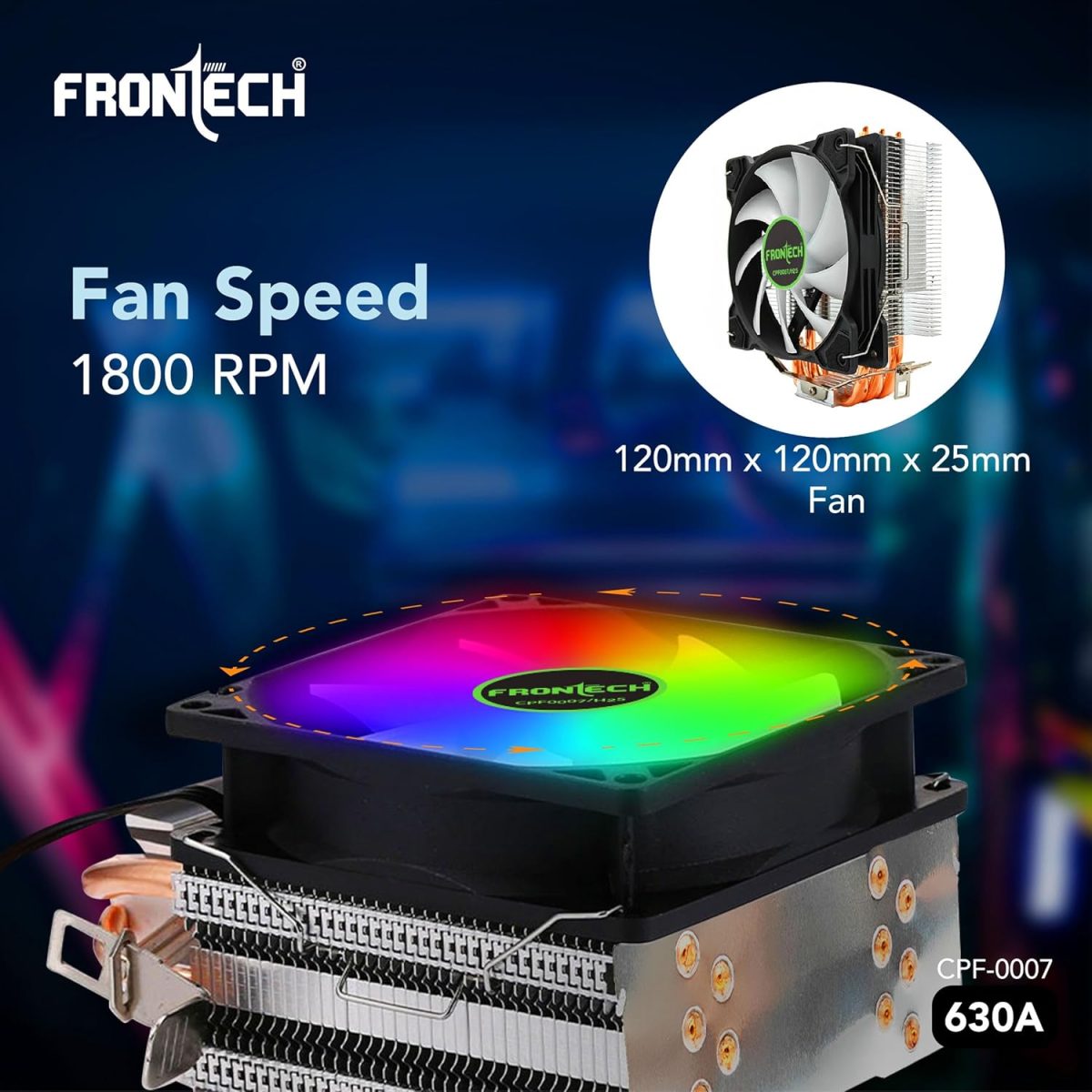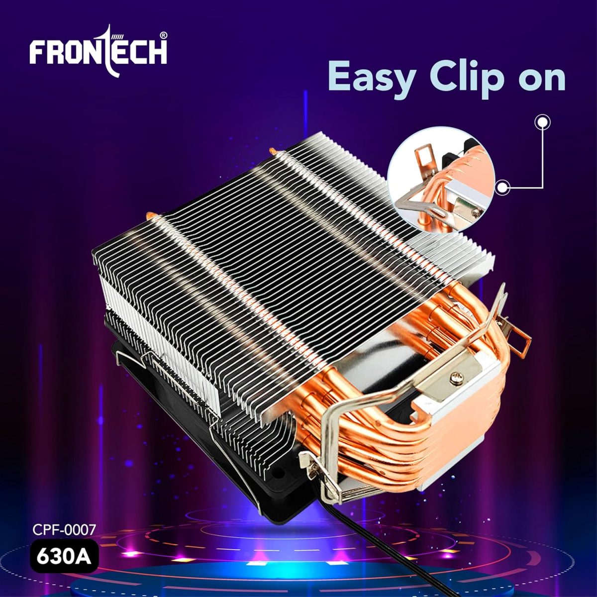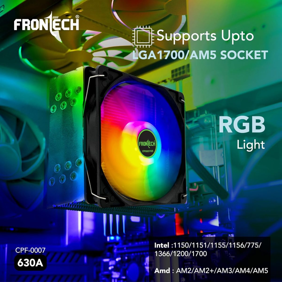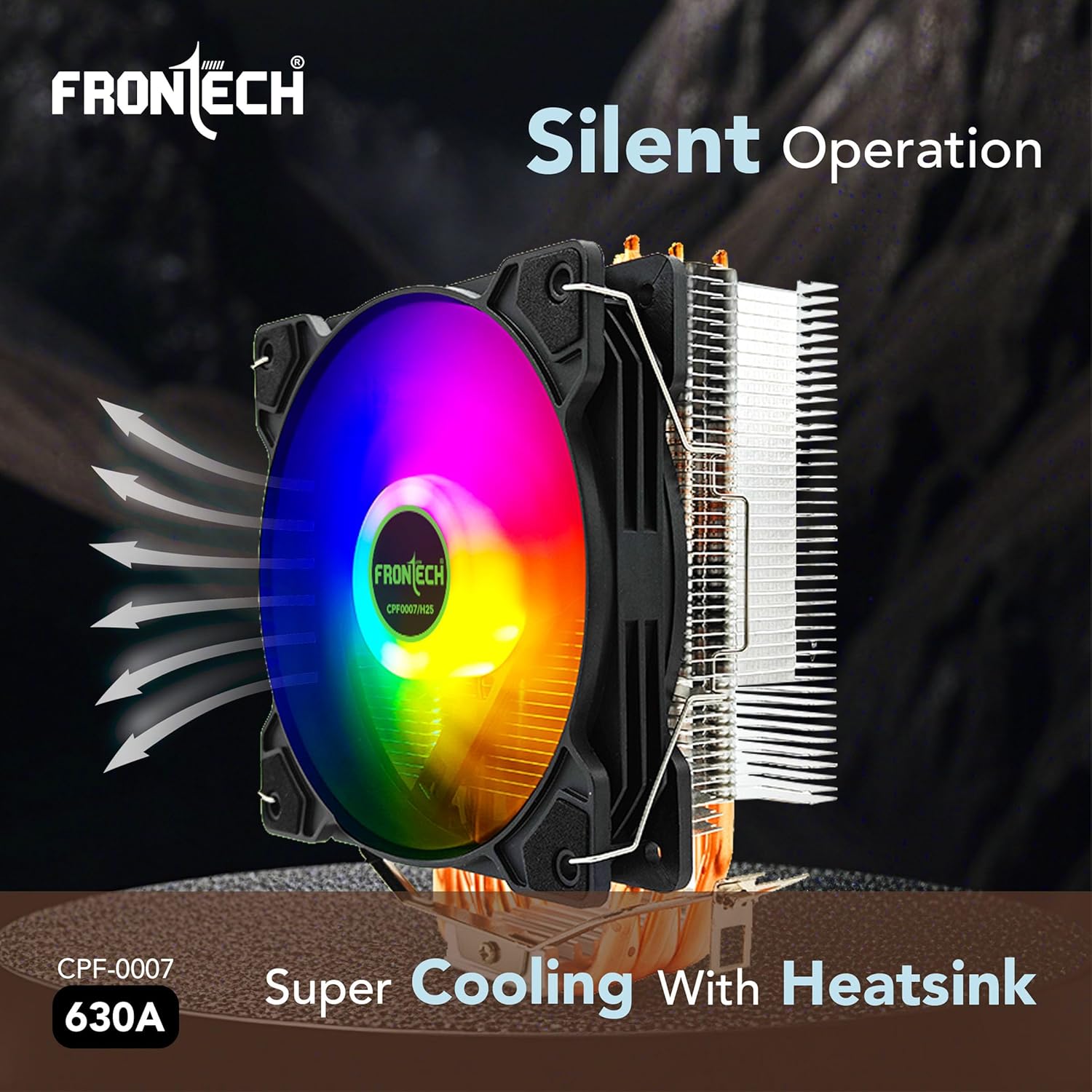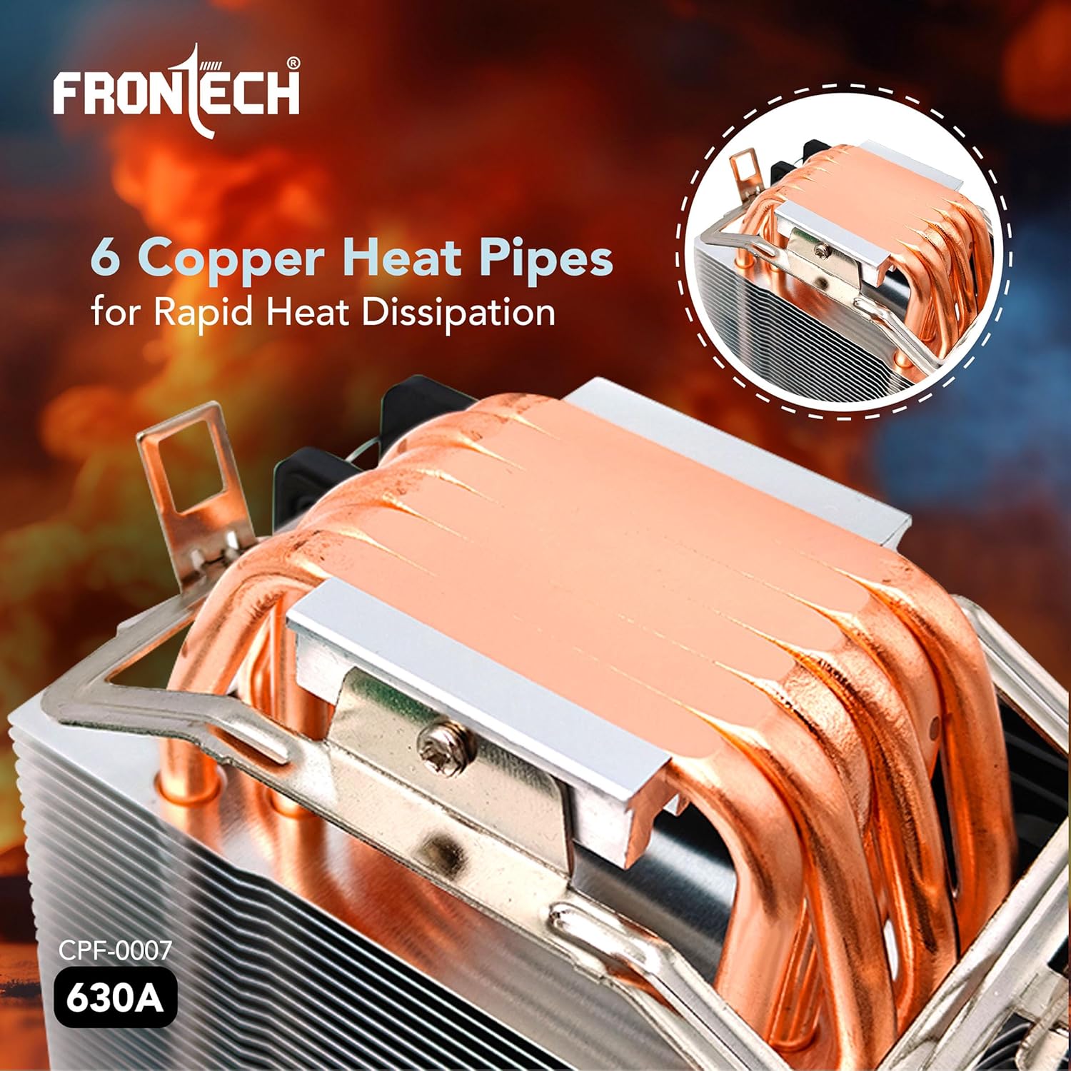 Frontech 630A CPU Air Cooler | 6 Copper Heat Pipes, 120mm RGB Fan, 1800 RPM | Supports LGA 1700 & AM5 | PWM 4-Pin + ARGB 3-Pin | Super Silent Cooling with Heatsink (CPF-0007)