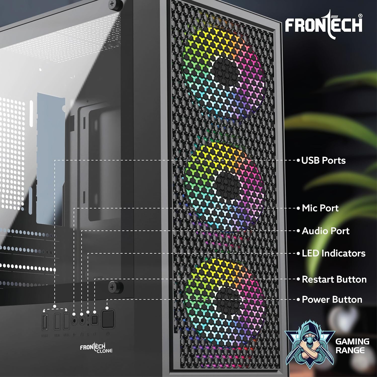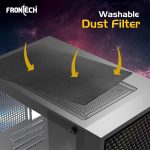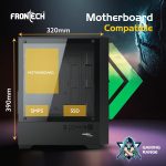 The Frontech Gaming PC Case features a full mesh front panel with 3 pre-installed 120mm LED fans for powerful cooling and a tempered glass side panel to showcase your setup. Compatible with ATX, Micro-ATX, and Mini-ITX motherboards, it includes USB 3.0, USB 2.0, audio ports, and a washable dust filter for easy maintenance.