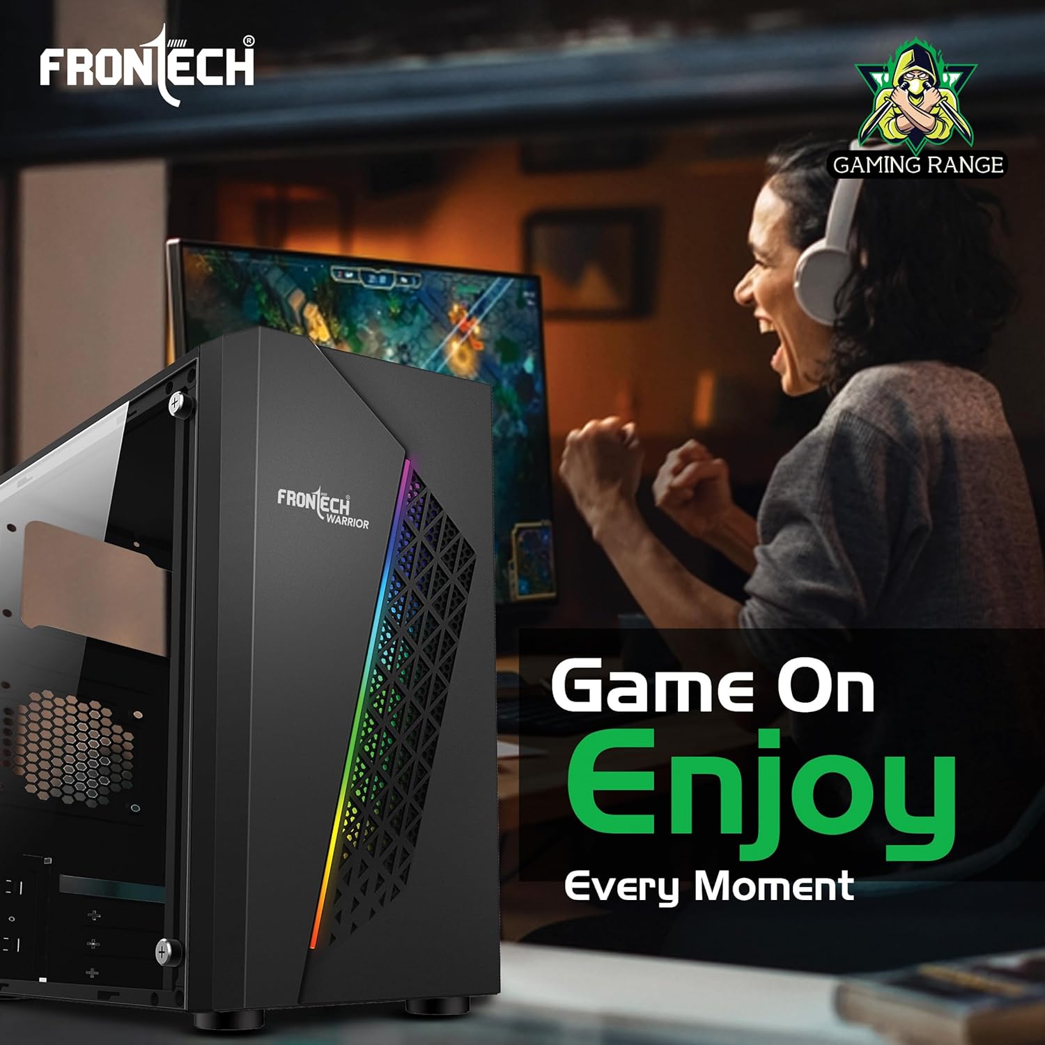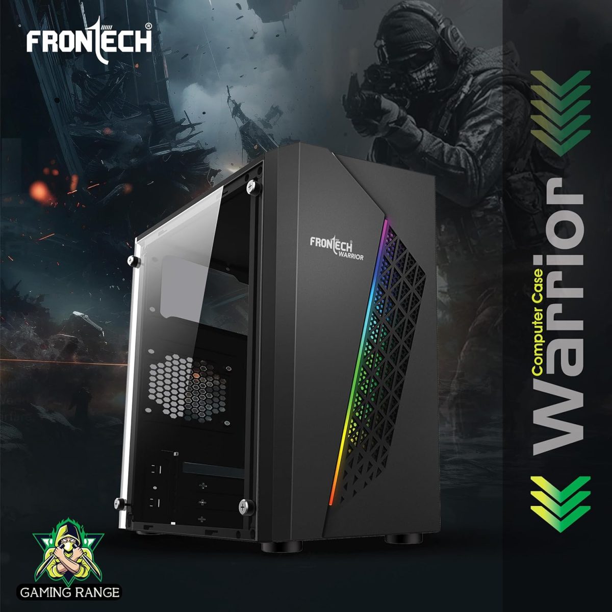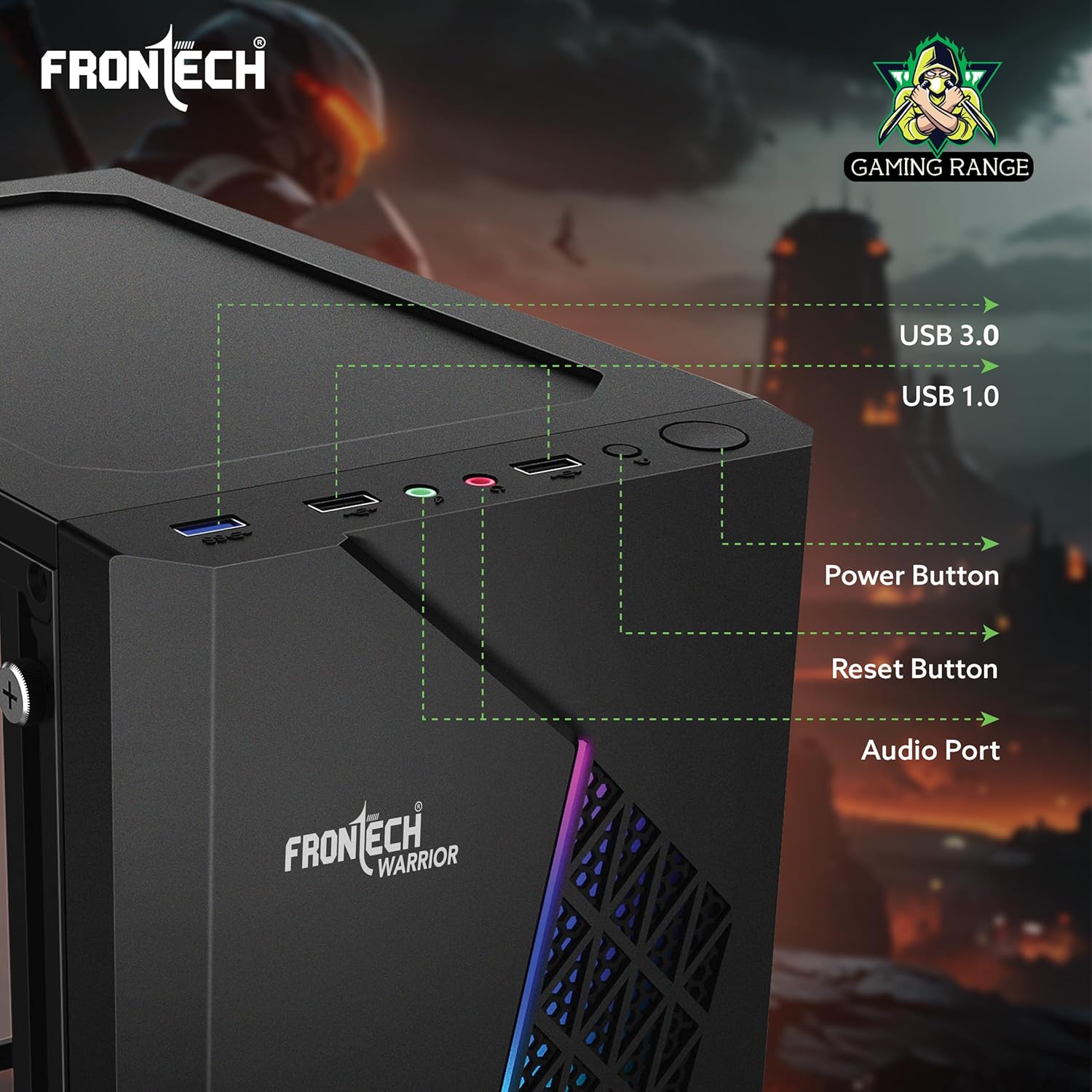 FRONTECH Gaming Computer Cabinet/Gaming Computer Case Warrior with 1 x 80 mm LED Fan and Acrylic Side Glass Panel | 2XUSB 1.0| 1XUSB 3.0| Front Audio (FT-4345)