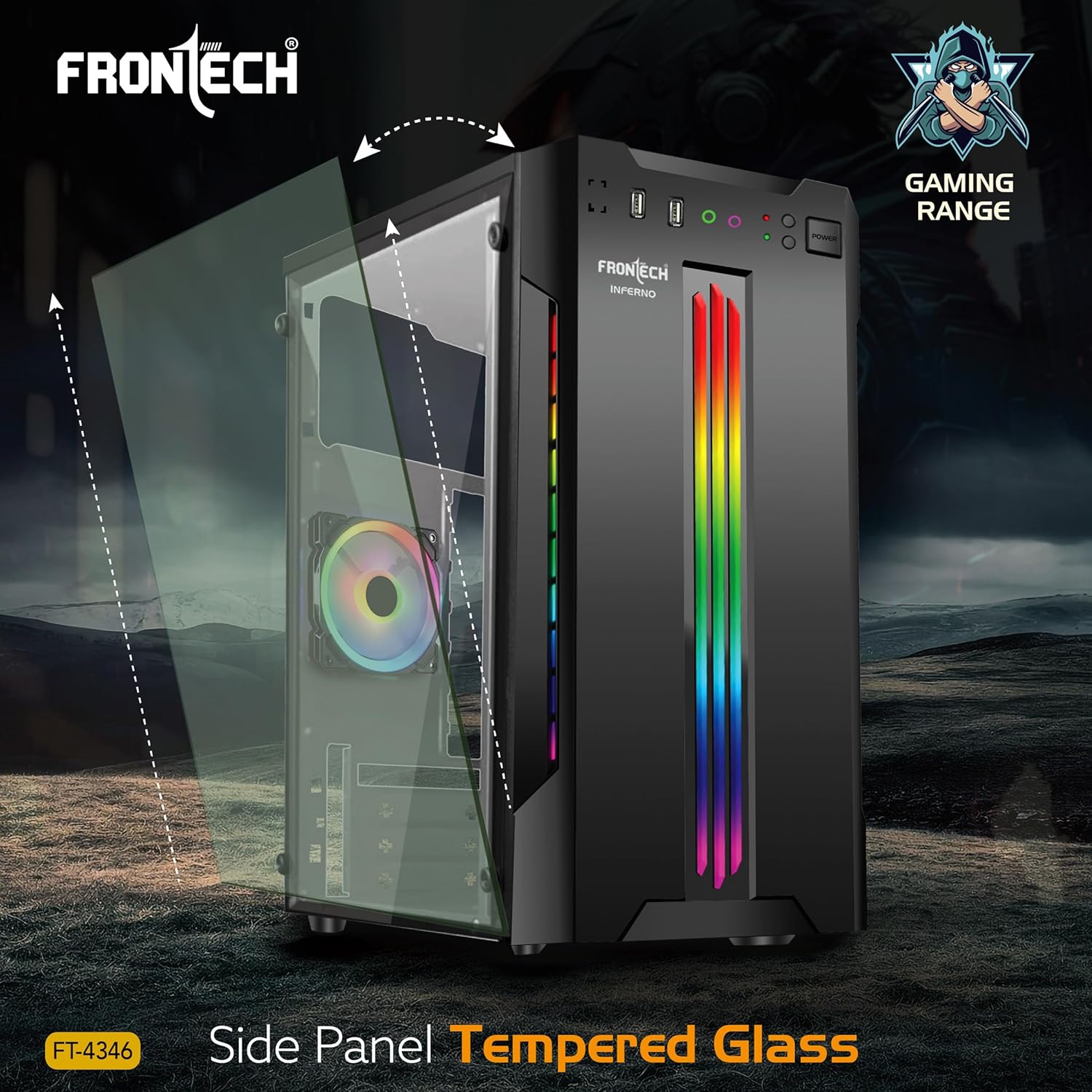 Enhance your gaming experience to new heights with our Premium Gaming Computer Case! Engineered to deliver unrivalled performance and stunning aesthetics, this case combines style and functionality in perfect harmony. With its sleek acrylic glass side panel, dynamic LED lighting, and advanced cooling system, it is the ultimate choice for passionate gamers and enthusiasts alike. Unleash the power of RGB with our included 80mm LED fan and front panel, illuminating your setup with vibrant colours and creating an immersive gaming atmosphere. Personalize the lighting effects to suit your mood and game themes, transforming your setup into a truly unique masterpiece. Stay ahead of the game with exceptional cooling capabilities. Our 1 x 80 mm LED fan ensures optimal airflow, preventing any possibility of overheating during intense gaming sessions. The tempered glass side panel not only beautifully showcases your components but also facilitates efficient heat dissipation, keeping your system cool even during the most demanding gameplay. Enjoy seamless connectivity with our computer case. Equipped with 1 USB 3.0 port and 1 USB 1.1 ports, effortlessly connect all your gaming peripherals without any hassle. The HD audio port guarantees crystal-clear communication with your teammates, elevating your gaming strategy to a whole new level.