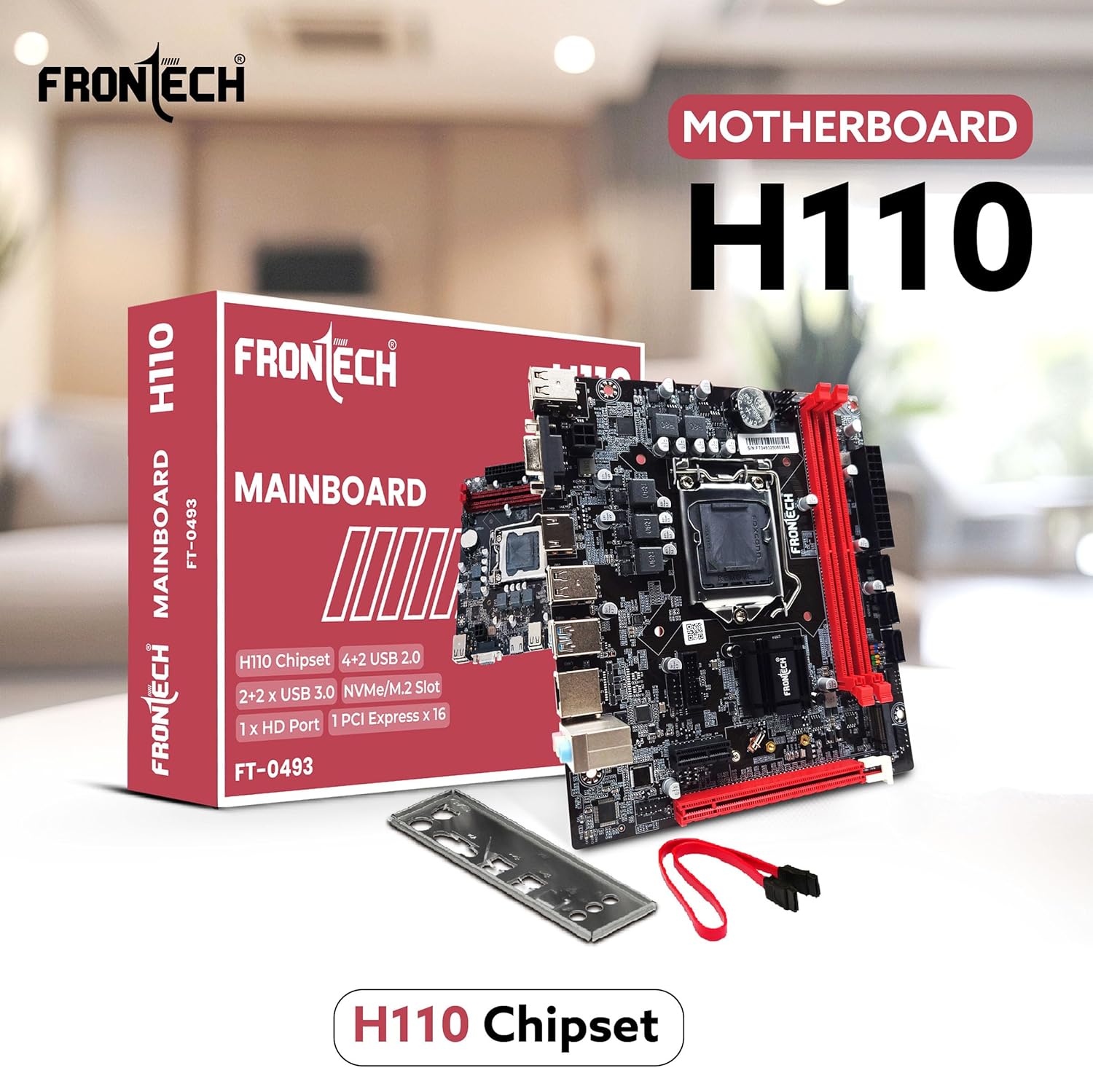 Frontech H110 Motherboard, LGA 1151, Supports Intel 6th–9th Gen i3/i5/i7/Celeron/Pentium, DDR4 32GB, HDMI, VGA, USB 3.0, M.2 NVMe, 3-Year Warranty (FT-0493)