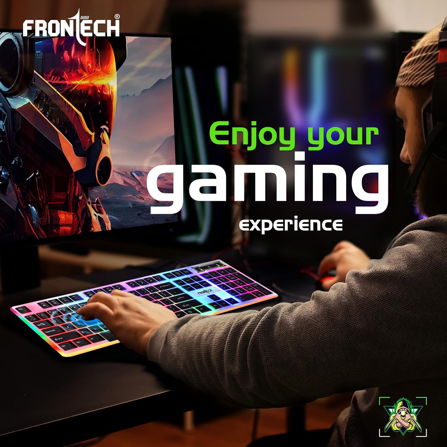 Frontech KB-0040P Wired Gaming Keyboard and Mouse Combo | USB Plug & Play | 1200 DPI Optical Mouse | 105-Key Keyboard | Compatible with Windows PCs
