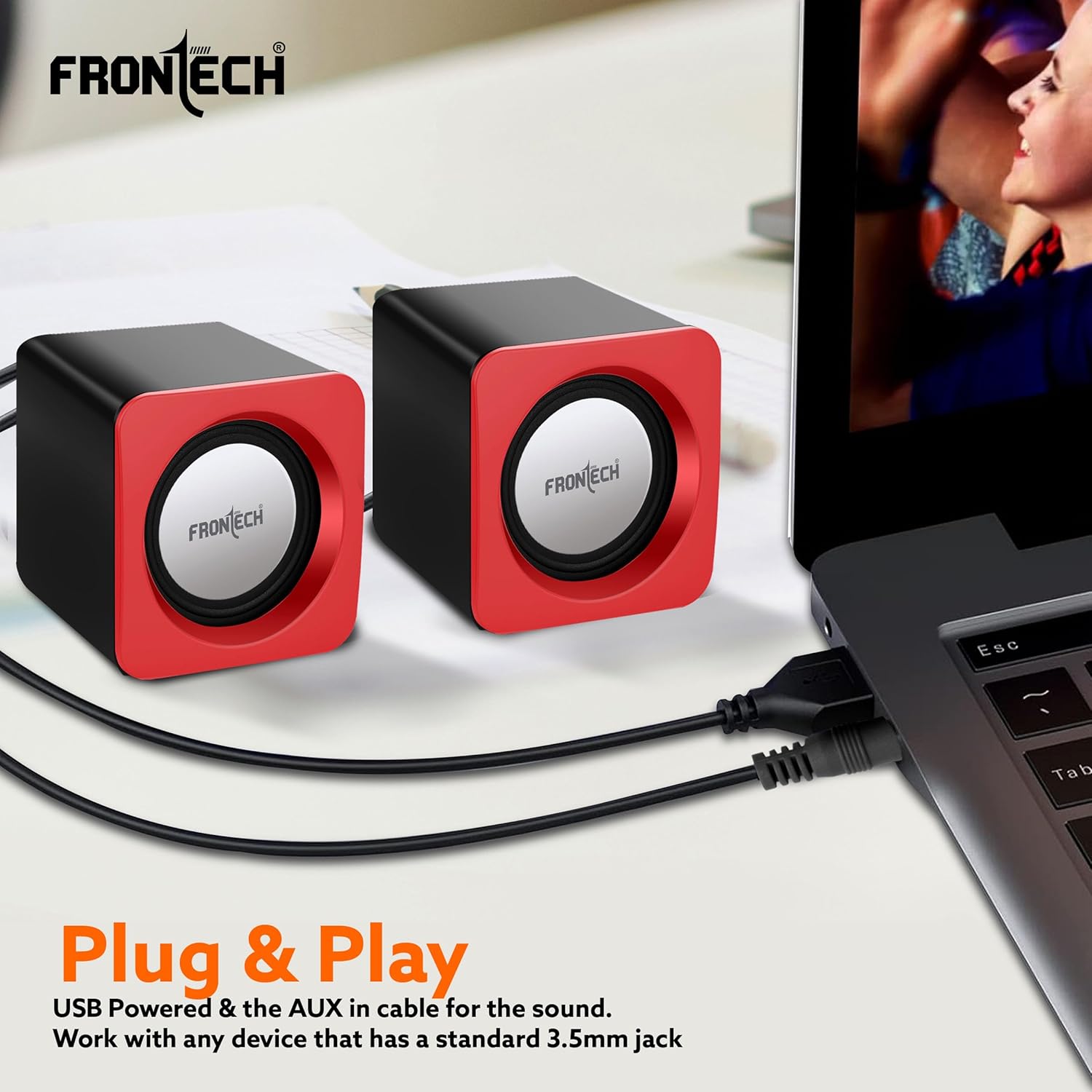 FRONTECH Premium 2.0 Channel USB Powered Speakers with 1.5W x 2 Output, AUX Input, and 1-Year Warranty (Red)