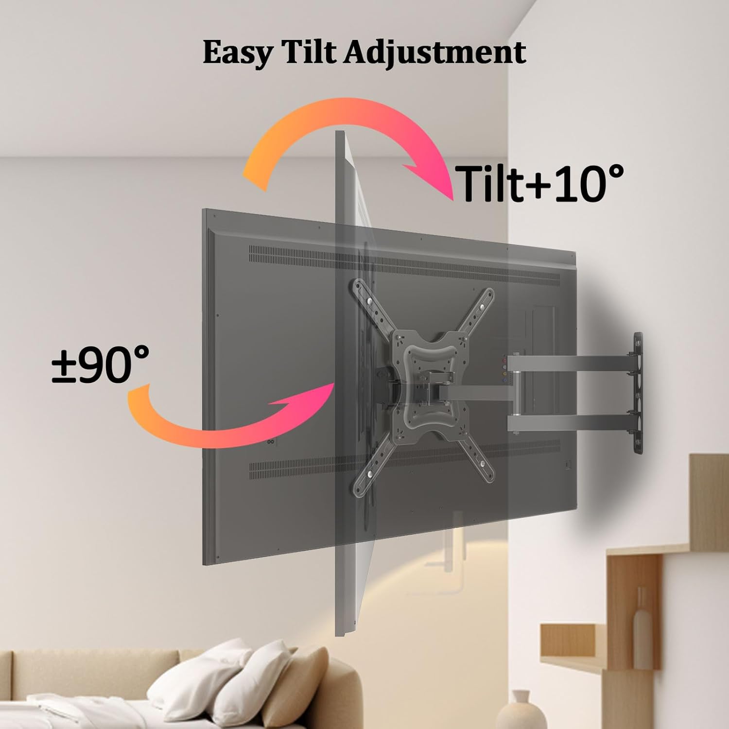 100% ENJOY EFFORTLESS VIEWING COMFORT – Free up your desk space with this fully movable articulating wall mount, designed for ergonomic workstation setups, not only improves your work posture but also offers a more comfortable viewing experience.