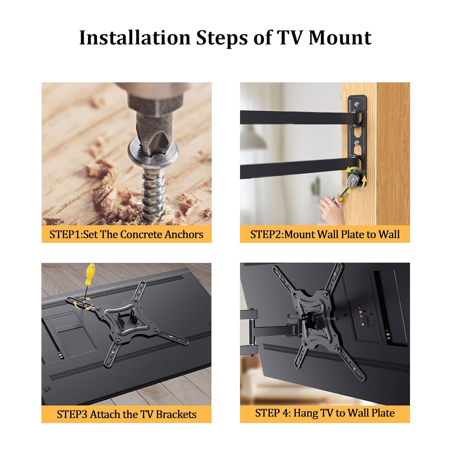 EASY INSTALLATION PROCESS This TV and monitor wall mount bracket comes with step-by-step instructions on how to do it and all the hardware needed to read and install, which will make mounting the bracket a breeze. The swivel TV wall mount is designed for single screw mounting and the removable TV plate ensures quick installation that can be easily done by one person for simplicity and great convenience.