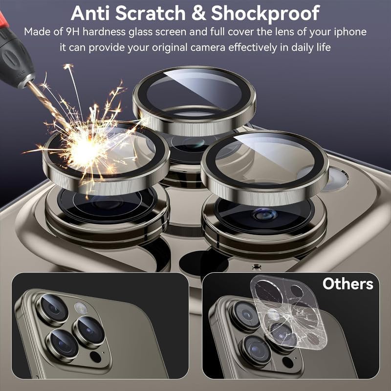 [Anti-Drop, Anti-Scratch and Anti-Vibration Protection] The aviation Tempered Glass metal ring and 9H tempered glass camera protector resist your iPhone from huge impacts and drops from external forces. The seal ring is designed to provide water, oil, and dust protection for your phone’s lens.