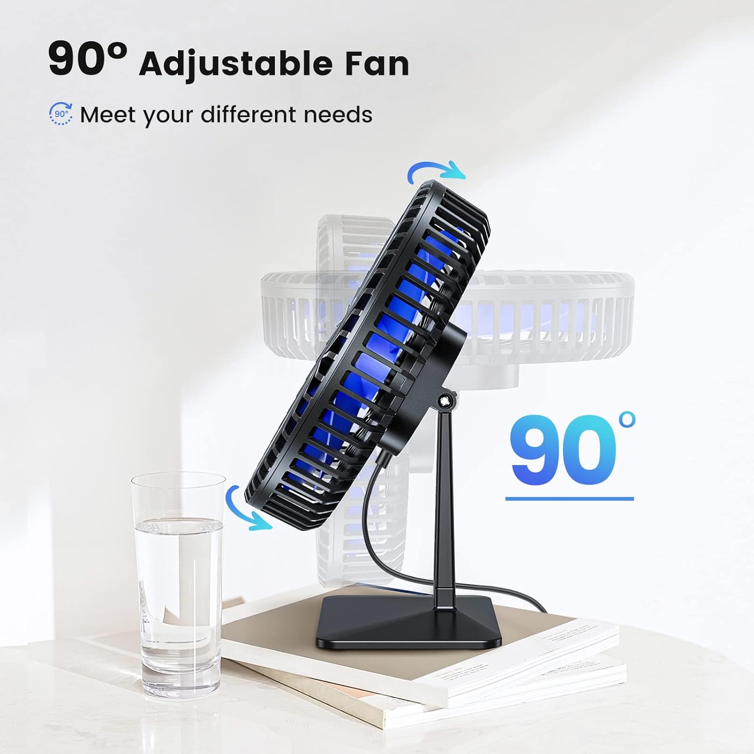Gaiatop Small Table Fan, 6.5 Inch Ultra-quiet, 90° Adjustment for Better Cooling, 3 Speeds Portable Mini Powerful Desktop Table Fan, Small Personal Cooling Fan for Home Office (Blue Blade)