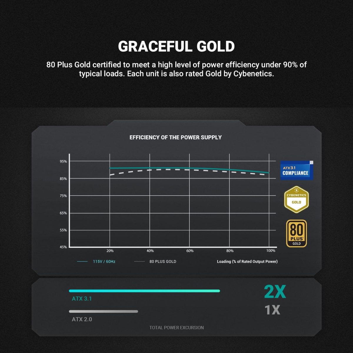 PCI-E 5.1 POWER : Equipped with a high-grade 105C-resistant 16AWG copper-core 12V-2×6 cable, the PN1000M provides up to 600W for modern GPUs.