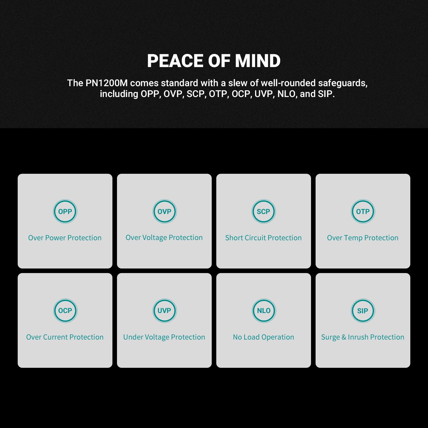 POWER YOU CAN TRUST : Through the use of a main Japanese electrolytic capacitor, active PFC, half-bridge SRC LLC, and a DC-to-DC topology, the PN1000M can keep the hold-up time to ≥ 16 ms under a high load of 80%.