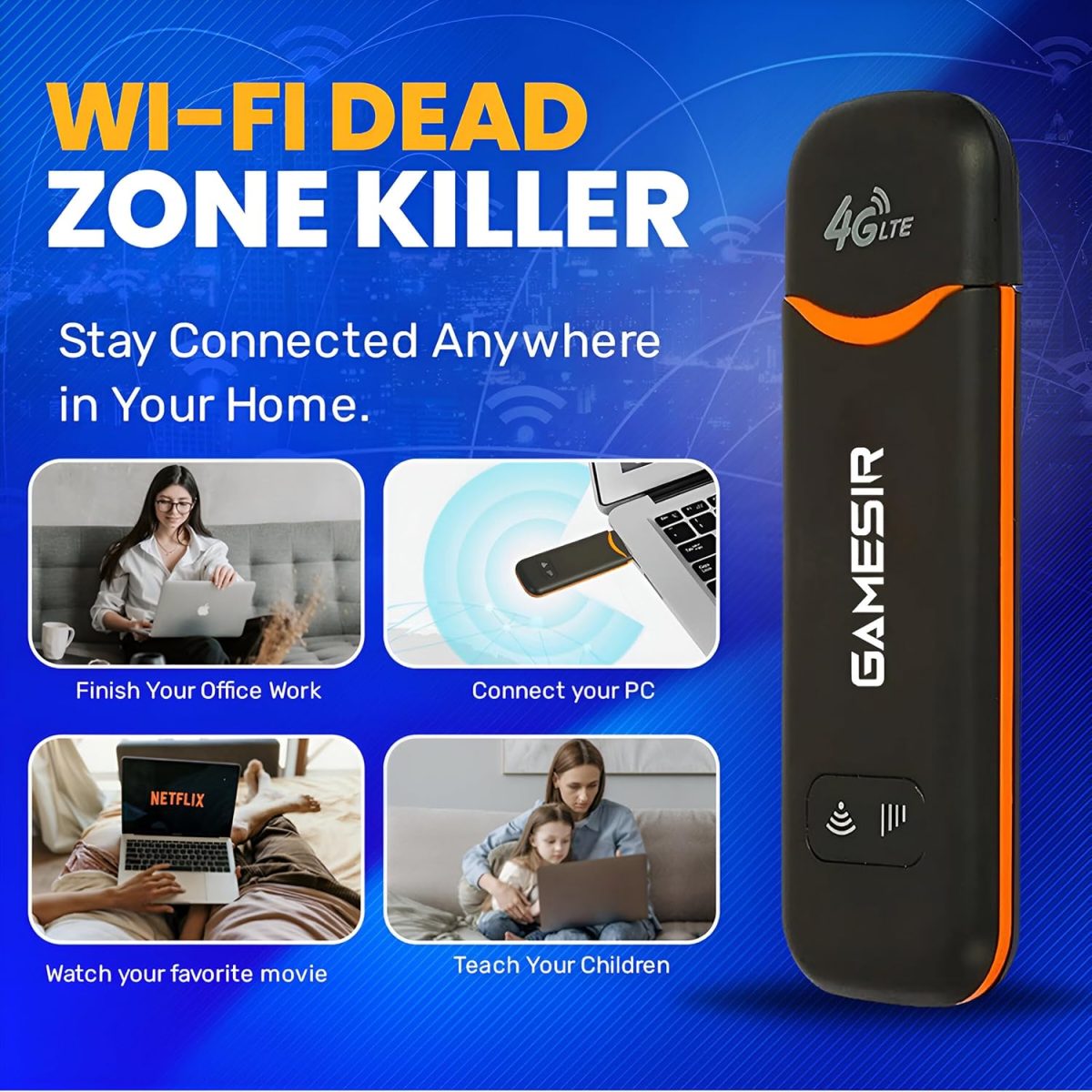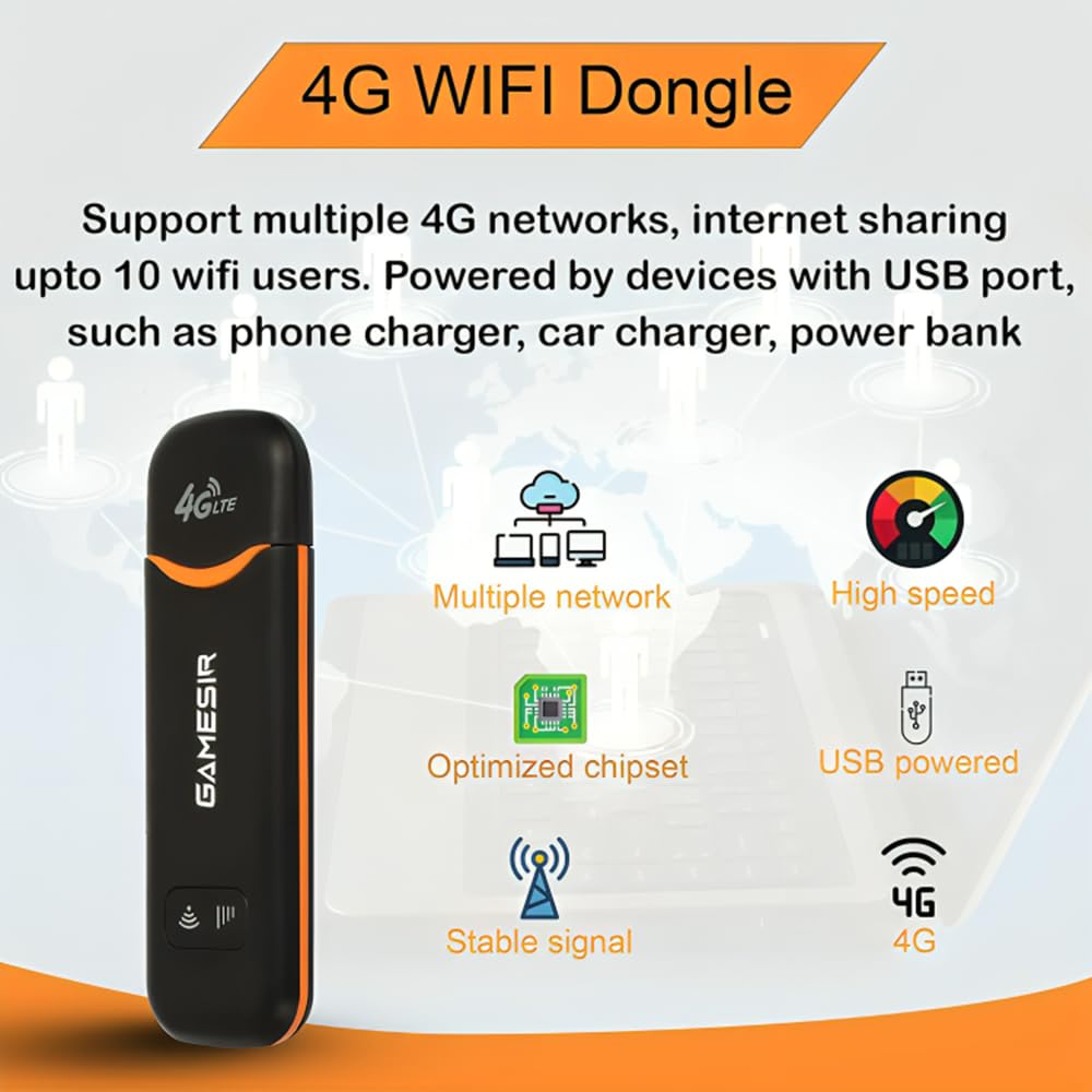GAMESIR 4G WiFi USB Dongle Stick with 150 Mbps High Data Speed All Sim Network Support(Except BSNL),Included Tri Band & Sim Slot Compatible with Laptop/Desktop/Tablet/Smartphone/Smart TV (Black)