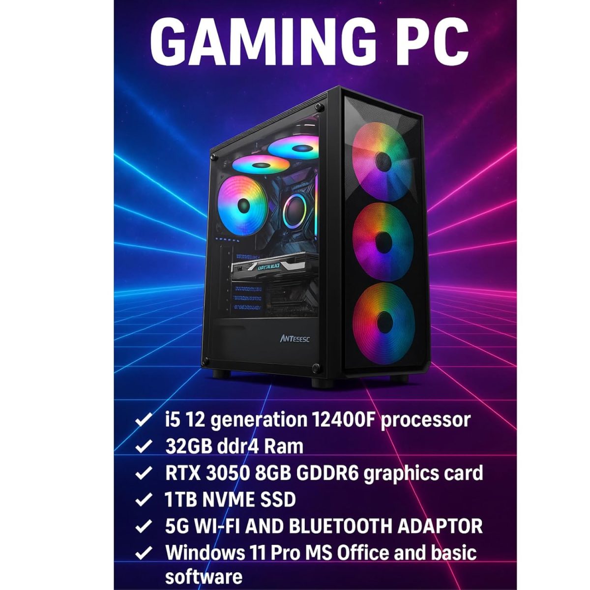 Gaming CPU for Desktop Computer Editing (Core i5-12th Generation // 8GB RTX 3050 Graphics Card // 32 GB DDR4 RAM // 1TB Nvme // Win 11 // Ms Office // 5G WiFi & BT)