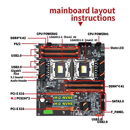 X99 Dual CPU Motherboard Server Motherboard LGA2011 Support DDR4 ECC Memory +2XE5 2620 V3 CPU+Switch Cable+Thermal Grease Support 8 DDR4 ordinary/server memory modules, a single memory module supports up to 32GB, and the frequency is support 2133/2400/2800 CPU support: E5-2678V3..E5-2696V3..E5-2629V3..E5-2666V3..E5-2668V3 (not included) Integrate 1 REALTEK 8106E 100M network card/8111H dryM network card High compatibility for a higher experience. This product uses high-quality materials, is durable, has a long service life, and is firm and stable in use. Type:X99 Motherboard CPU socket type: LGA 2011 Chipset: For X99 Hard disk: 6 x SATA3.0 interface, 1 x SDD M.2 interface (support PCIE only), 1 x SDD M1 interface (support PCIE and SATA) USB interface: 4 x USB20, 4 x USB3.0 Disk build/mouse: support 1inch PS/2 button mouse interface AUDIO: 1 x F AUDIO standard audio three-in-one high-fidelity audio interface Expansion bus: 1 x COM pin, 2 x PCIE 16X and 2PCIE interface Note: The appearance and color of different batches of products may be different, which does not affect the use Note: Random color, don’t accept the specified color. color:Black Material:PCB size:290 x 280MM Package Contents: 1 x Motherboard 2 x E5 2620 V3 CPU