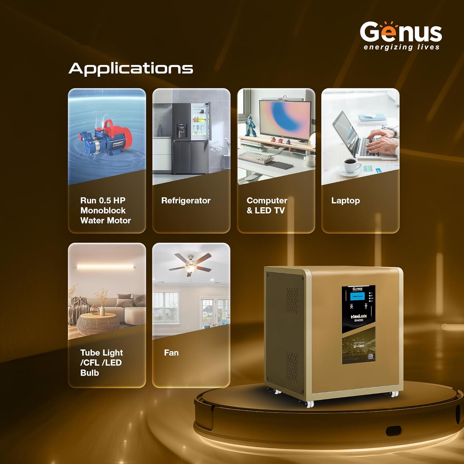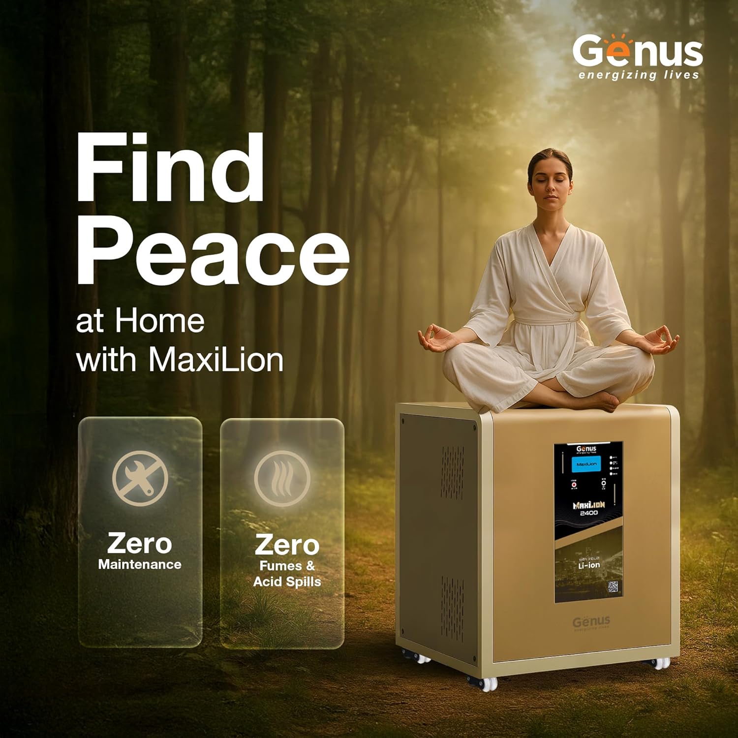 Maintenance Free : Unlike traditional lead acid batteries which require regular water topping, repairs or replacements, Genus Maxilion 2400 Lithium Ion Inverter get rid of maintenance.