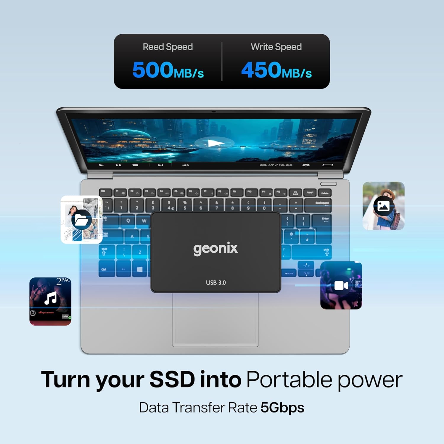Fast Speed – The fast data transfer speed of Geonix SSD enclosure refers to its ability to quickly move data between the SSD and the connected device. This allows for rapid file copying, quick backups, and efficient handling of large files. The fast transfer speed enhances overall performance and user experience.
