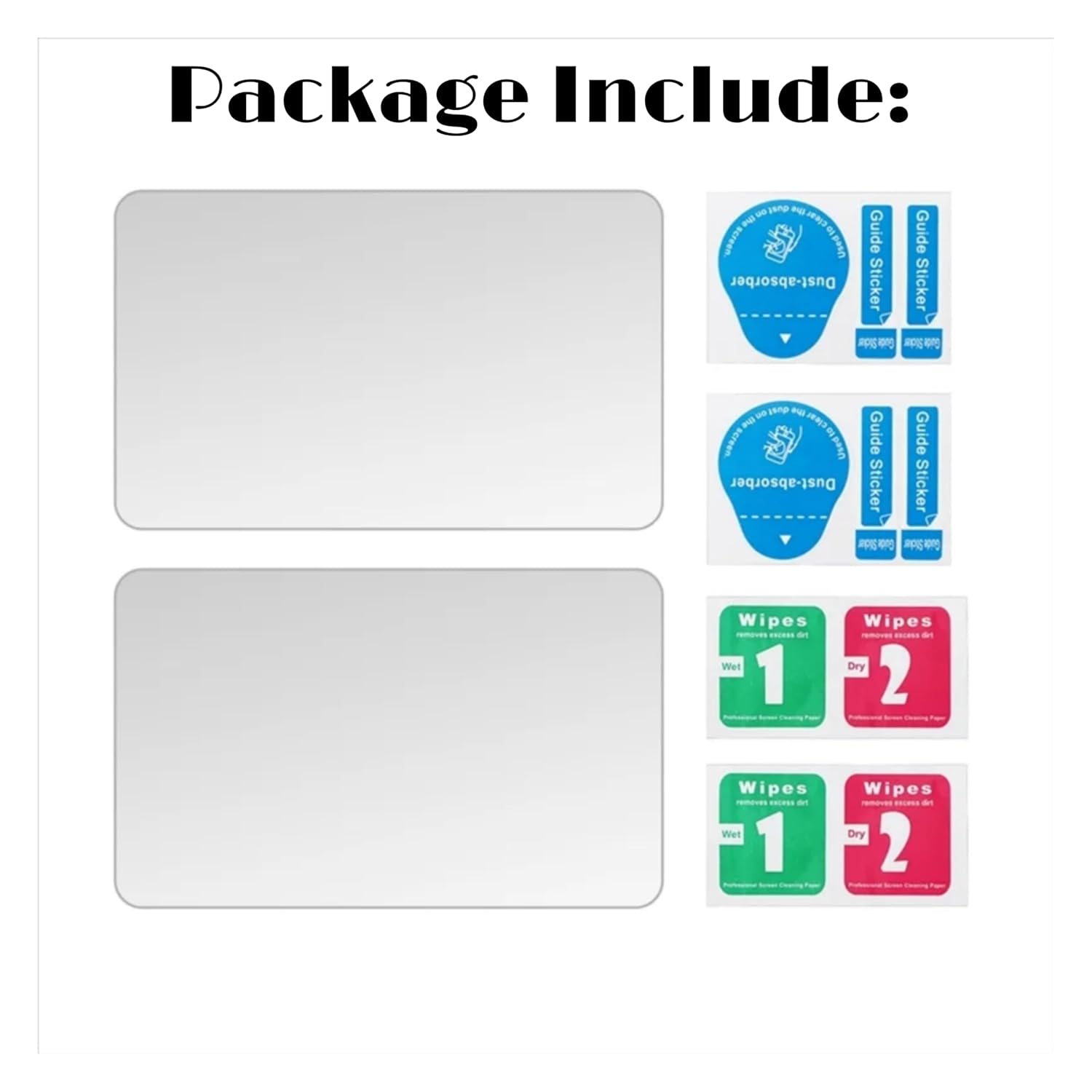 Package Include: 2 x Screen Glass, 2 x Wet & Dry wipes, 2 x Dust absorber