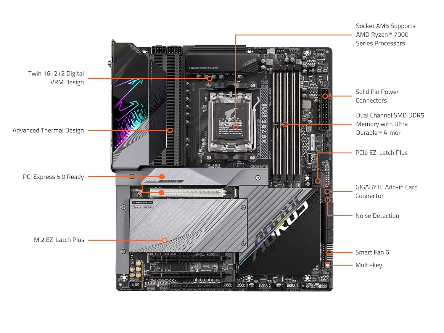 Cutting-Edge Thermal Design: Fins-Array III & M.2 Thermal Guard III, Ultra Durable Armor, NanoCarbon Aluminum Backplate, Aluminum IO Cover