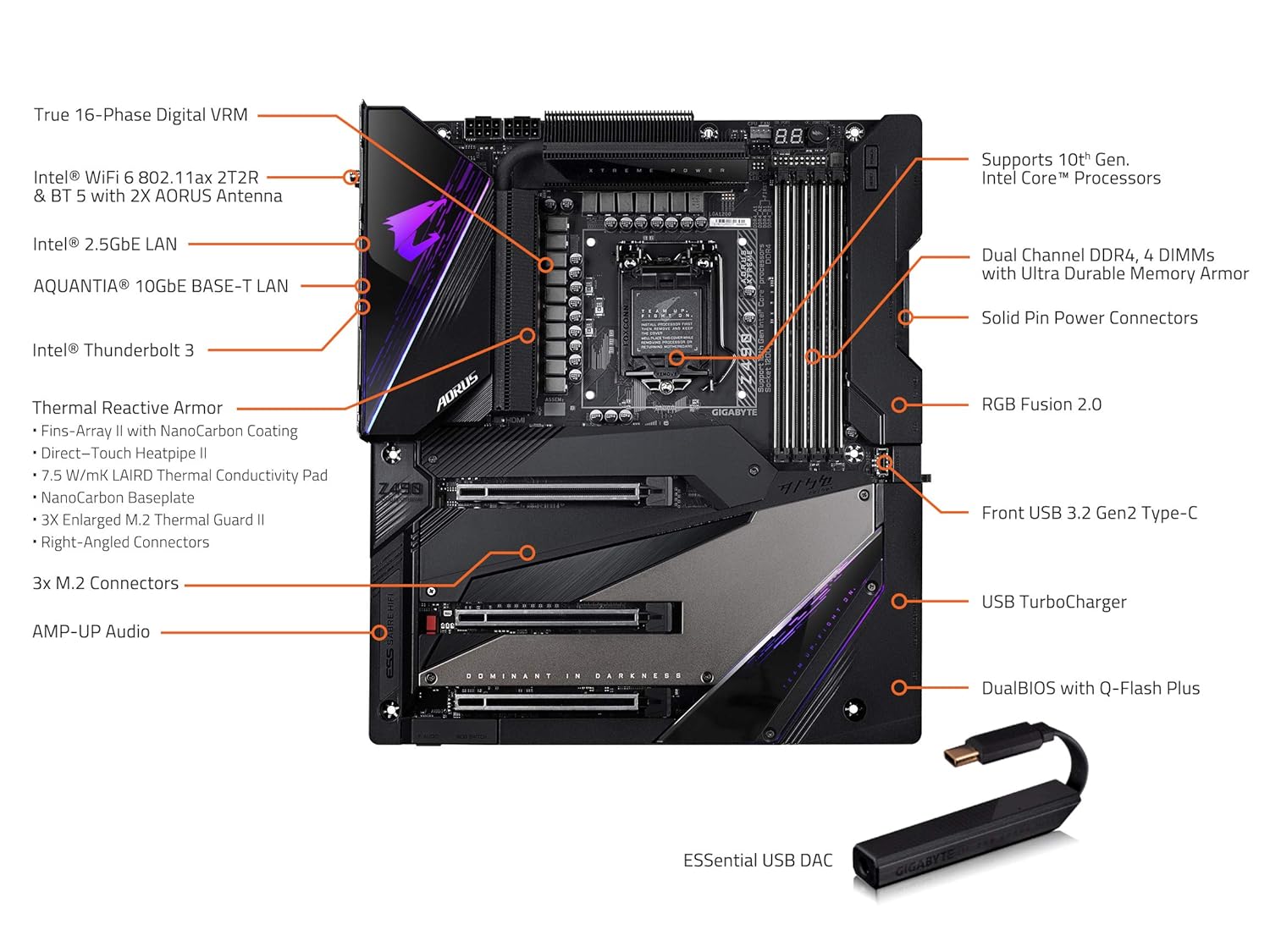 GIGABYTE Z490 Aorus Xtreme with 16 Phases Digital Vrm with Intel Thunderbolt 3,DDR4, Essential USB Dac, Intel Wi-Fi 6 802.11Ax, Aquantia 10GBe LAN, Intel 2.5GBe LAN