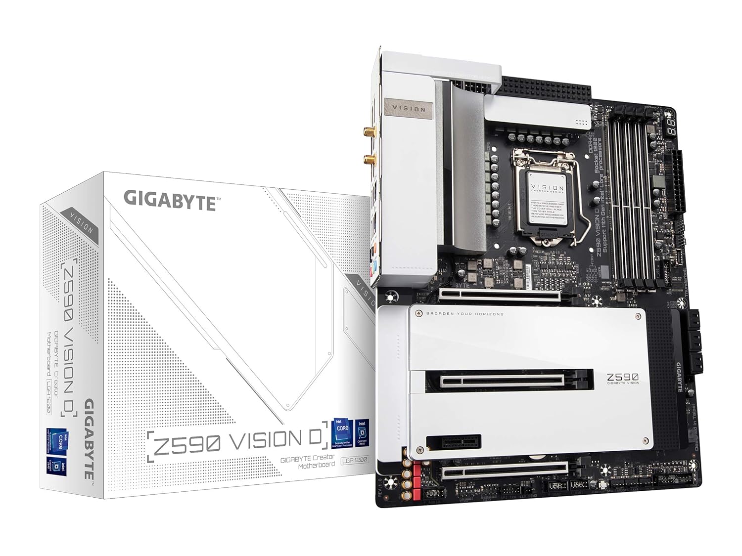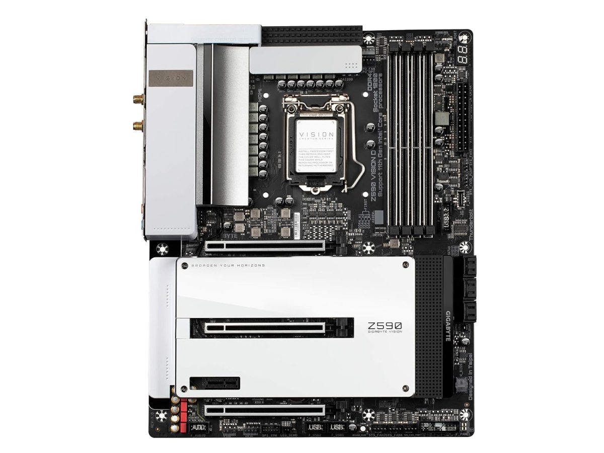 GIGABYTE Z590 Vision D Creators Motherboard with Unique VisionLINK TB I/O Design, Thunderbolt 4, Intel Wi-Fi 6 802.11ax and Dual Intel 2.5GbE LAN, Dual PCIe 4.0 x16 Slots
