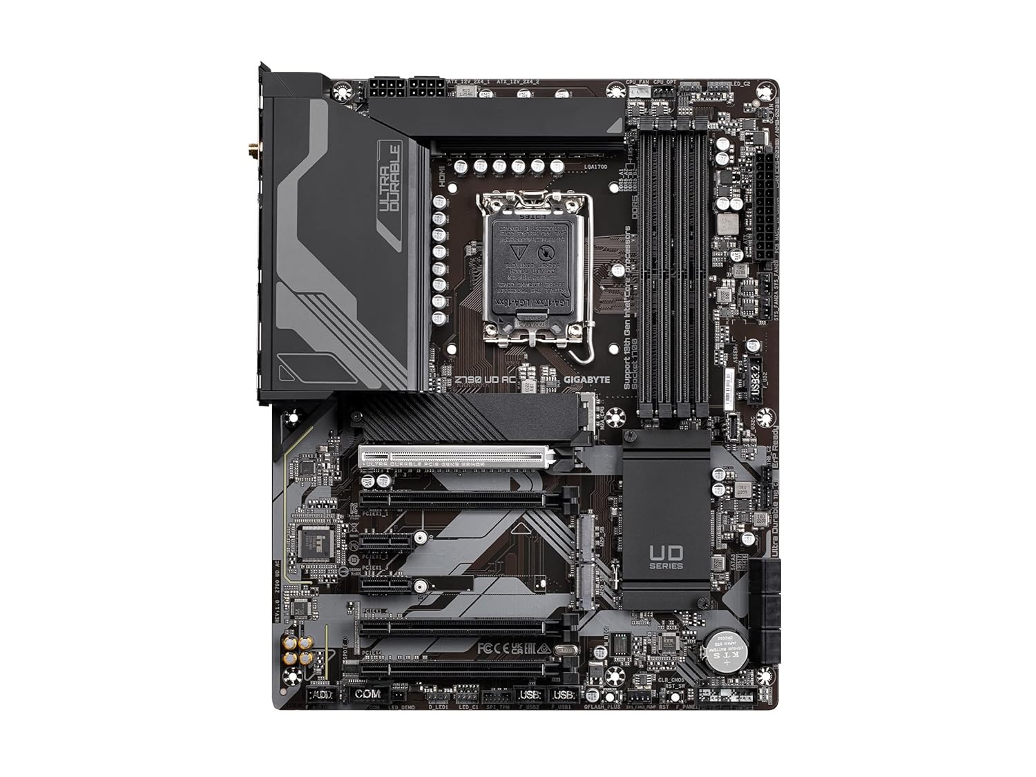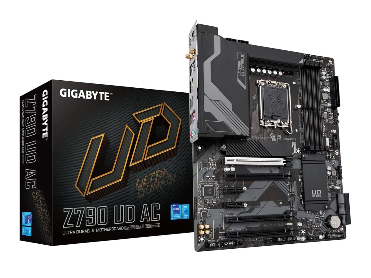 Intel LGA 1700 Socket: Supports 13th and 12th Gen Intel Core Series Processors DDR5 Compatible: Dual Channel DDR5, 4 DIMMs Sturdy Power Design: 16+1+1 Twin Hybrid Phases Digital Power Design with 60A DrMOS Comprehensive Thermal Design: Fully Covered MOSFET Heatsinks, M.2 Thermal Guard, Ultra Durable Armor, 6-layer PCB Next Gen Connectivity: PCIe 5.0, Triple NVMe PCIe 4.0 x4 M.2, SuperSpeed USB 3.2 Gen 2×2 Type-C Fast Networking: 2.5GbE LAN, Intel Wi-Fi, BT Fine Tuning Features: RGB FUSION 2.0, Supports Addressable LED & RGB LED Strips, Smart Fan 6, Q-Flash Plus Update BIOS without installing, CPU, Memory, and GPU. Ascend the Throne of Gaming with the Z790 UD AC. The Z790UD AC supports 13th and 12th Gen Intel Core Processors unparalleled performance. Unlock your gaming potential with GIGABYTE Z790 Motherboards. GIGABYTE Z790 motherboards come with upgraded power design, high grade storage standards, and outstanding connectivity that enables you to optimize your performance. Claim what is yours.