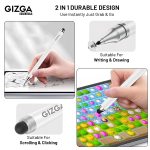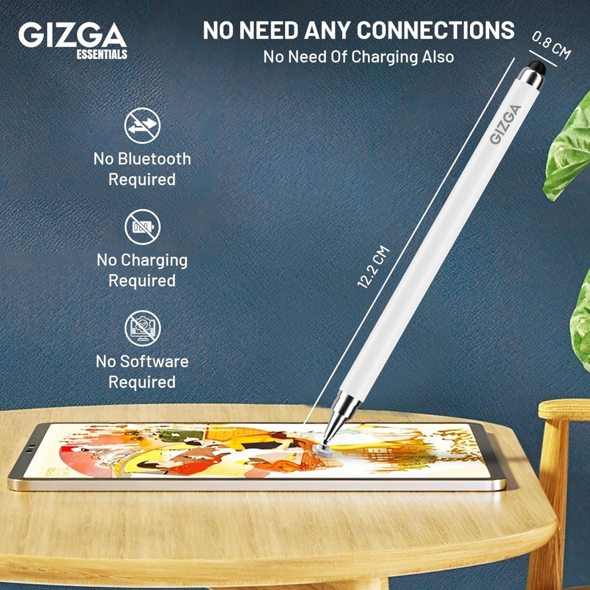 Gizga essentials 2 in 1 Universal Stylus Pen for All Touchscreen Devices| Fine Point Disc Tip & Soft Rubber Tip Touch Pen for iPad/Pro/Air/mini, iPhone, iOS/Android, Tablets, Smartphones (White)