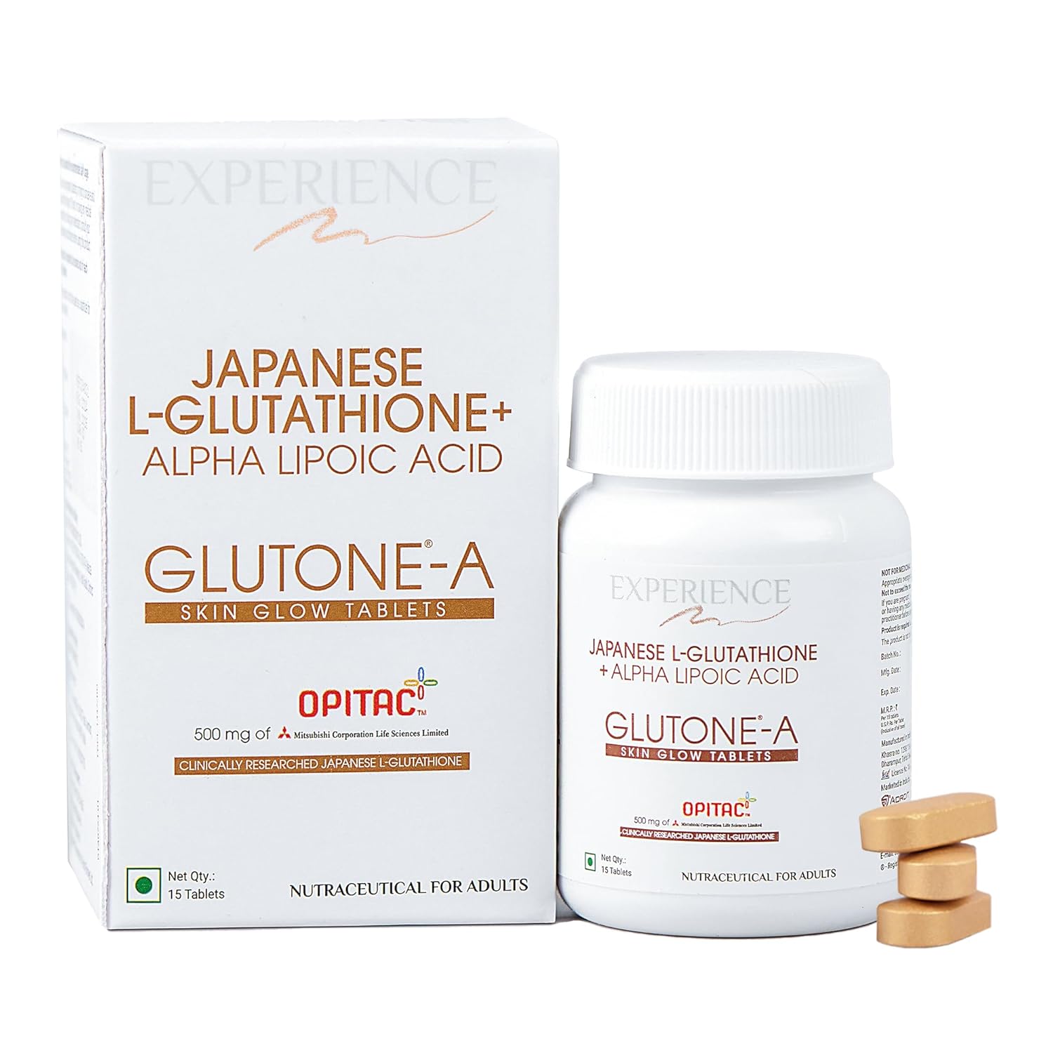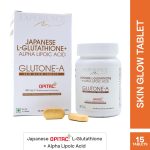 WHAT IS GLUTONE-A TABLET?: Glutone-A is an oral glutathione beauty supplement formulated with 500mg of Japanese Opitac glutathione and 100mg of Alpha Lipoic Acid. It helps reduce skin pigmentation, fades away dark spots & tanning by decreasing the darker melanin production and makes skin even tone.