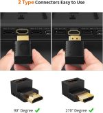 VERSATILE CONNECTOR: 90-degree L-shaped HDMI adapter enables flexible cable management and reduces strain in tight spaces behind TVs and displays