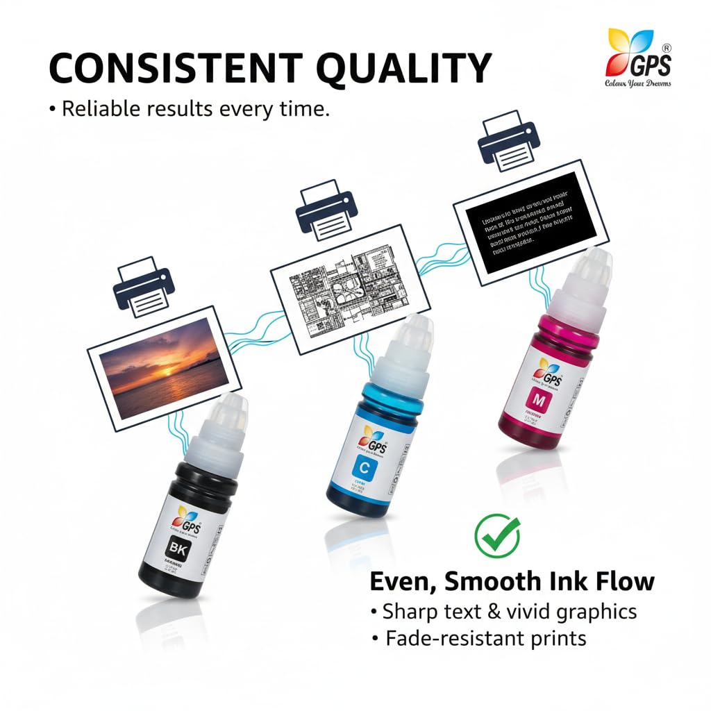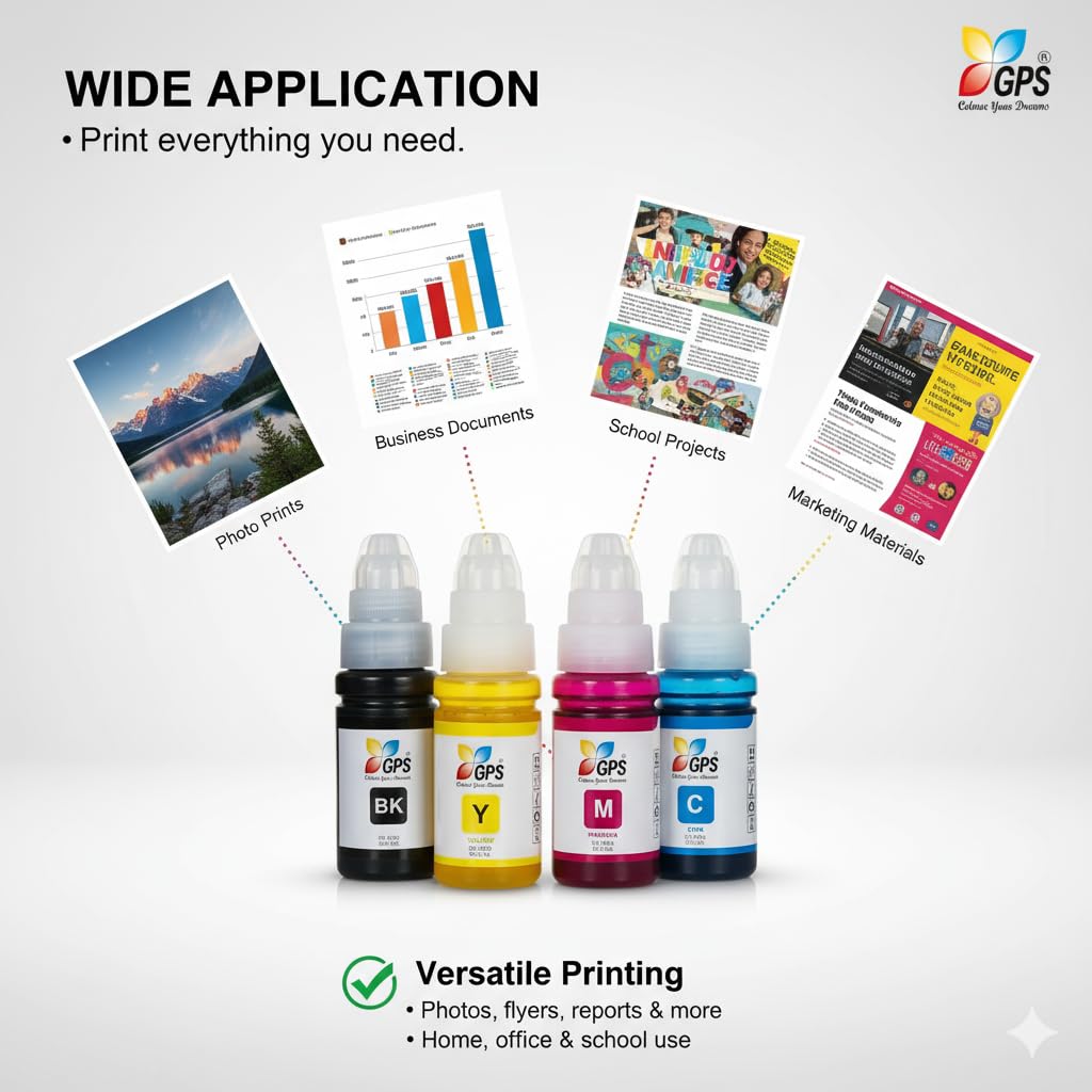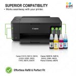 VIBRANT & SHARP PRINTS EVERY TIME: Formulated with high-quality dye-based ink, our bottles produce vivid colors, sharp text, and true-to-life photos. Whether it’s a project report, a colorful presentation, or a family photograph, expect professional-quality results with every print.
