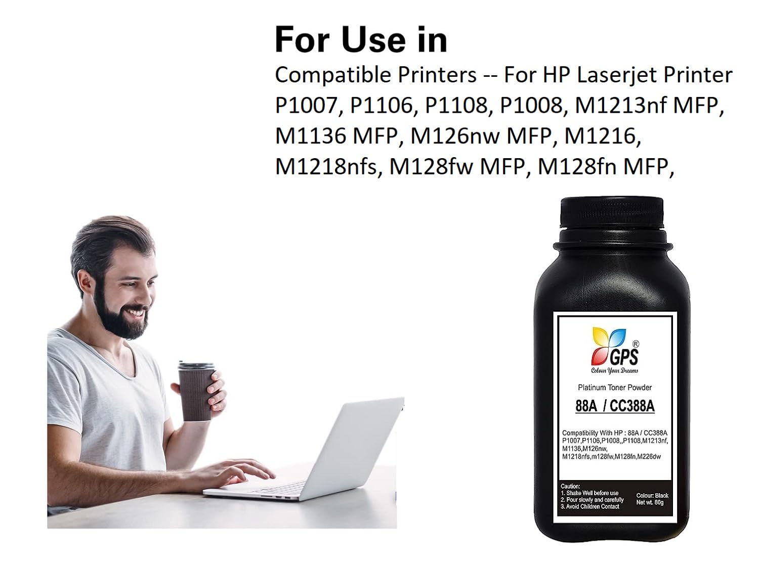 GPS Colour Your Dreams Pack of 5 for 88A Toner Powder for Laserjet Printer Cartridges – Compatible with HP Laserjet M1136 MFP, Ink Refill for 88A Black Cartridges (88A-Powder-5Pcs)