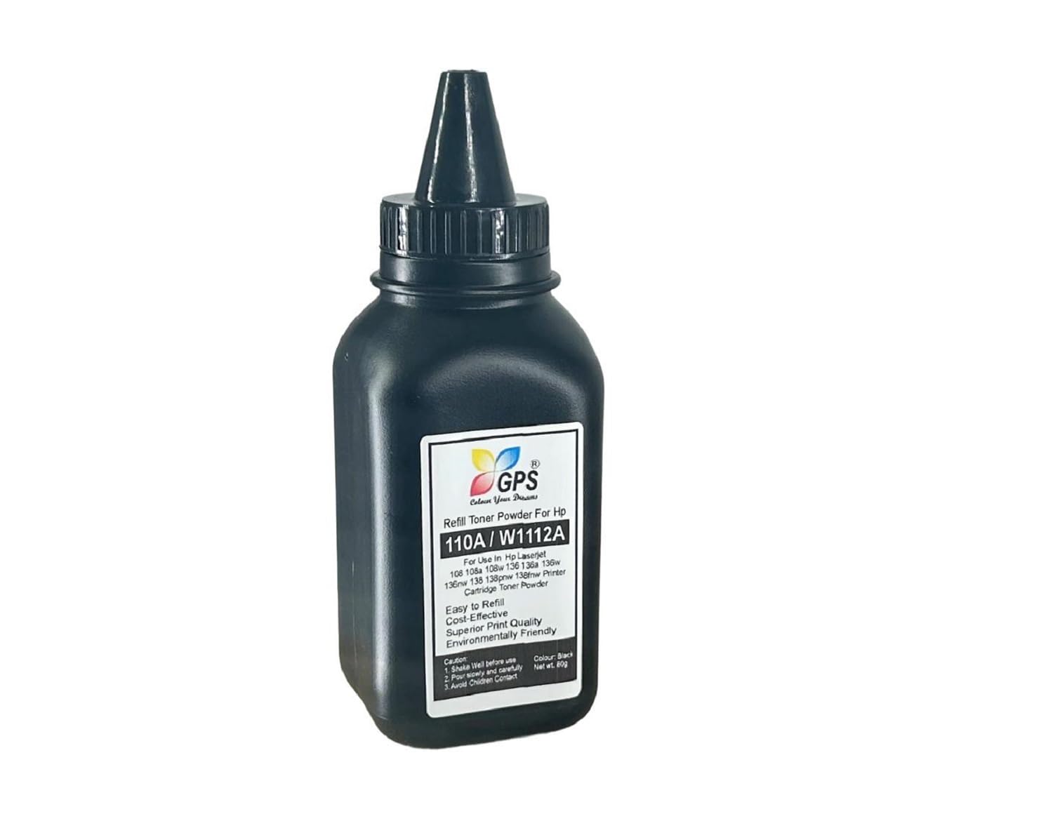 GPS Colour Your Dreams brings you the W1112A for hp 110a Toner Cartridge Refill Powder, a perfect solution for your printing needs. This top-quality toner cartridge powder is fully compatible with HP Laser printers such as 108, 108a, 108w, 136, 136a, 136w, 136nw, 138, 138pnw, and 138fnw. The 110a toner cartridge refill is designed to offer you high performance and excellent print quality every time. With this 110a toner powder, you can expect sharp, clear, and vivid prints, making your documents look professional.