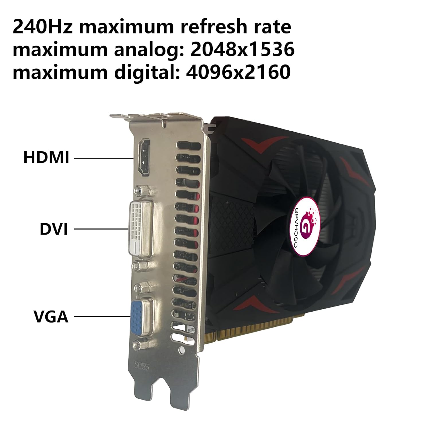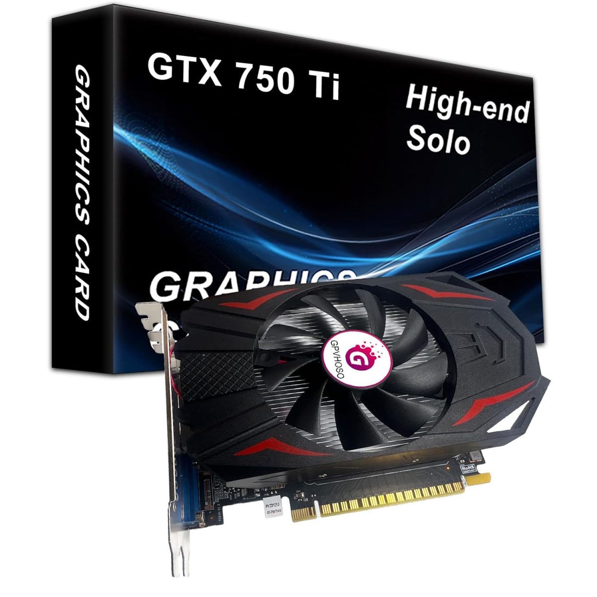 GPVHOSO GTX 750Ti Graphics Card, 2GB GDDR5 128bit Direct X12 640SP Gaming Video Card, pci_e_x16 Interface, HDMI, DVI-D, VGA, Single Fan, Low Power GPU for Working Gaming
