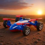 Get ready to turn heads with the GRAPHENE Fly Car, a uniquely designed toy that perfectly blends the sleek aesthetics of a drone with the thrilling performance of a ground vehicle. This eye-catching toy is not just cool; it’s a statement piece for playtime.The GRAPHENE Fly Car boasts a striking blue and white body with a streamlined, aerodynamic shape, making it look incredibly fast even when standing still. Equipped with four vibrant red propellers, it captures the essence of a high-tech drone, adding to its “cool and handsome” appeal.While its drone-like appearance might suggest otherwise, the GRAPHENE Fly Car is expertly crafted for exciting ground-based adventures. It’s the perfect toy for imaginative play, racing across floors, or staging daring ground missions. Please note: This car has no flight function and is designed exclusively for terrestrial enjoyment.
