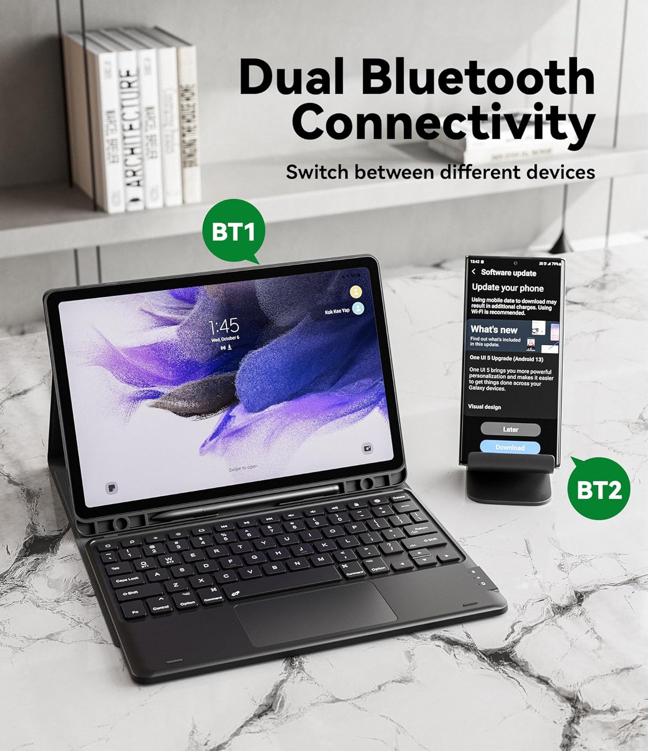 Samsung Galaxy Tab S9 FE 5G case with keyboard tab S9 keyboard case with pencil holder black backlit keyboard for s9 s9 fe keyboard SM-X510/X516B/X518U SM-X710/X716B/X718U