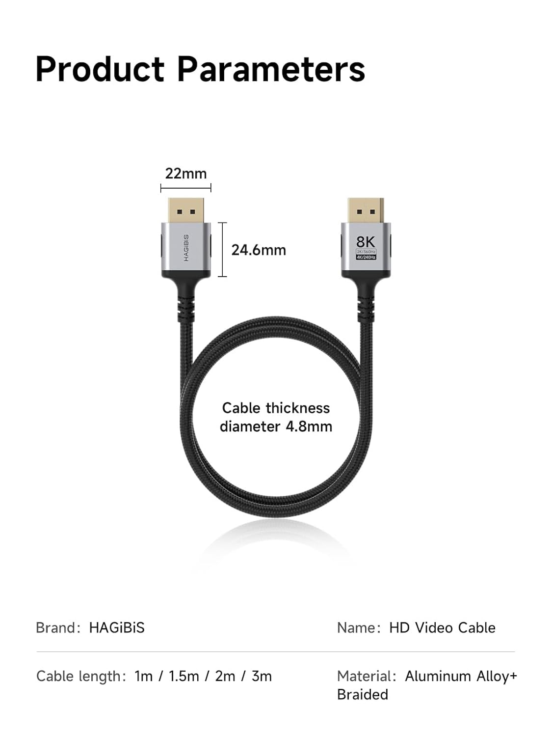Wide Compatibility: Hagibis 8K DisplayPort cable is compatible with all graphics cards and monitors with DisplayPort ports; It supports DP, DP++, and DisplayPort++; Avoid using extensions or adapters, as signal conversion may reduce performance