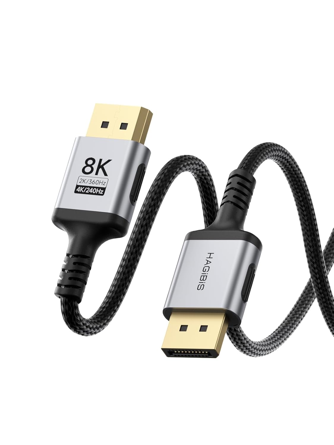 Hagibis 8K DisplayPortCable, 8K@60Hz 4K@240Hz 2K@360Hz DP Cable 32.4Gbps, Braided High Speed Dynamic HDR 3D DisplayPort Cable for Gaming Monitor Graphics Card PC TV (1.5m)