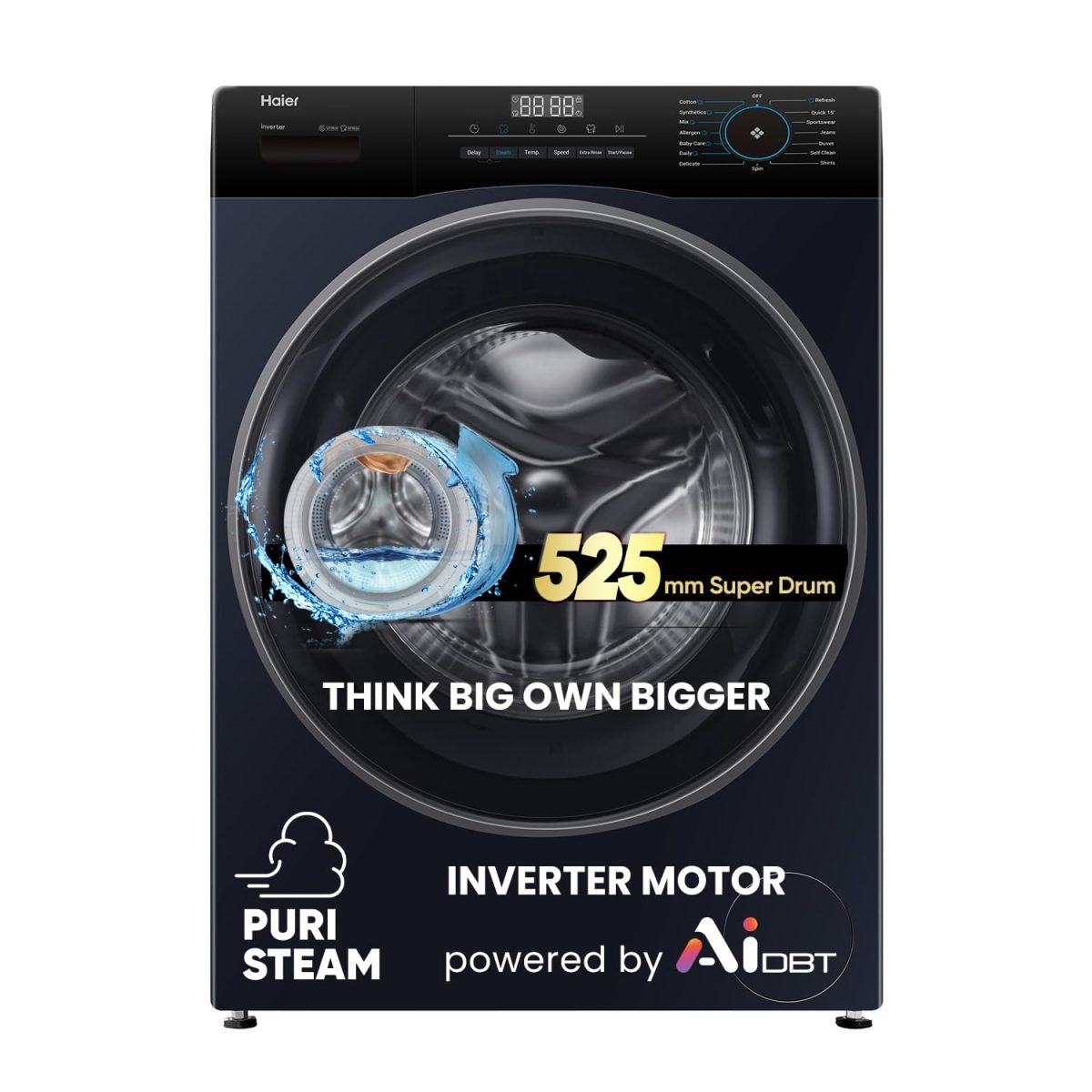 Haier 7 Kg 5 Star Powered by AI-DBT with PuriSteam, 525mm Super Drum Fully Automatic Front Load Washing Machine (HW70-IM12929BK, Inverter Motor with In-Built Heater, Black)
