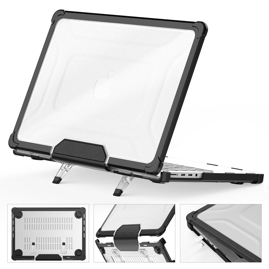 ERGOSTAND FEET: Ergonomic kickstand feet on this MacBook Pro cover enhance your comfort and typing posture. Precision vents seamlessly with your MacBook Pros design, optimizing airflow to prevent overheating during prolonged work or video calls, enhancing performance and longevity.