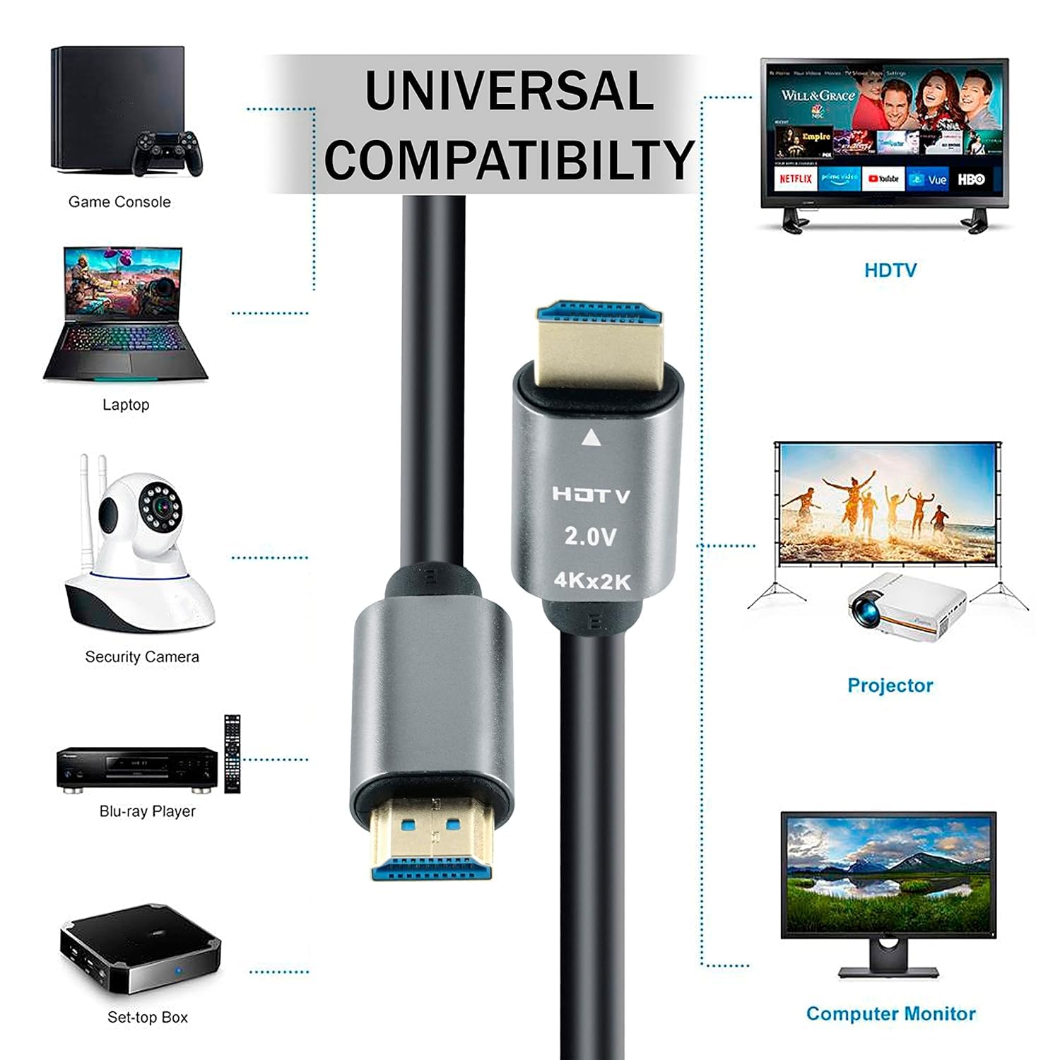 HDMI Male to Male Certified,3D 4Kx2k Video at 60 Hz, backwards compatible with 2160p 60Hz 1080p 144Hz and previous HDMI devices v1.4 & v1.3 Standards.